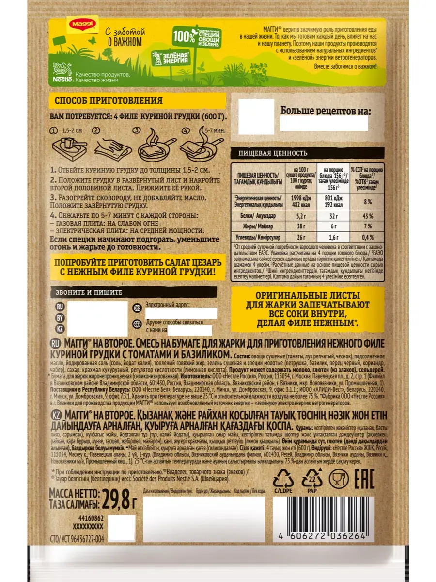 Новый революционный способ приготовления куриного филе в уникальных листах для жарки MAGGI На второе поможет Вам приготовить гарантированно нежное и вкусное куриное филе без добавления масла за 14 минут!