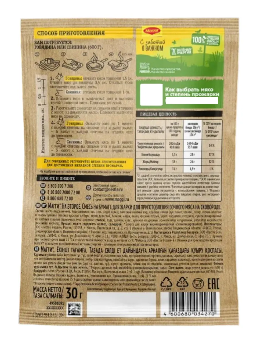 Как приготовить сочное мясо в домашних условиях? Это просто: с листами для жарки от MAGGI мясо получается сочным и нежным, как в ресторане. Листы для жарки запечатывают все соки внутри и содержат специально подобранное к мясу сочетание специй. Добавьте гарнир из овощей для вкусного обеда или ужина.