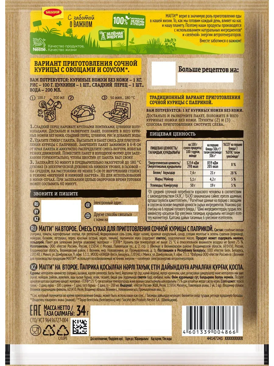 продукт может содержать глютен (из пшеницы), молоко, сельдерей,