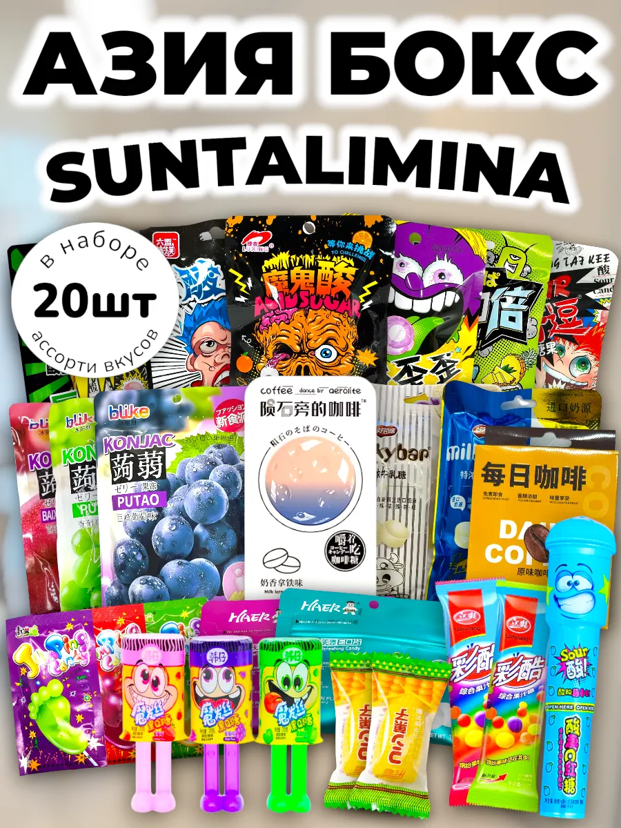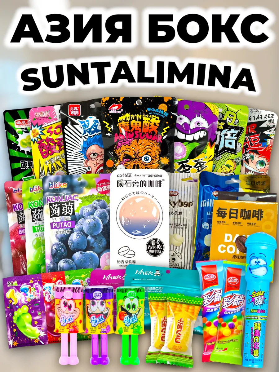 Asia Box — это авторский набор азиатских сладостей ассортимента SUNTALIMINA, созданный для ценителей необычных вкусов и эстетичной подачи. Внутри бокса — ассорти популярных сладостей из Азии: жевательные конфеты, мармелад, желе, карамель, кислые леденцы, фруктовые конфеты и другие культовые азиатские десерты. Такой формат позволяет познакомиться сразу с разными вкусами и текстурами, не выбирая что-то одно. Набор Азия Бокс построен на контрастах: нежное сменяется тягучим, сладкое — ярко-кислым, классические фруктовые вкусы — нестандартными азиатскими сочетаниями. Каждая конфета дополняет общую композицию, создавая ощущение продуманного ассорти, а не случайного микса. Набор воспринимается как премиальный сладкий бокс, который подходит и для подарка, и для личного удовольствия. Его выбирают, когда хочется удивить, порадовать или просто попробовать лучшие азиатские сладости в одном наборе. Такой бокс отлично подойдёт для подарка, тематических вечеринок, обзоров, контента и знакомства с трендовыми сладостями из Азии.
