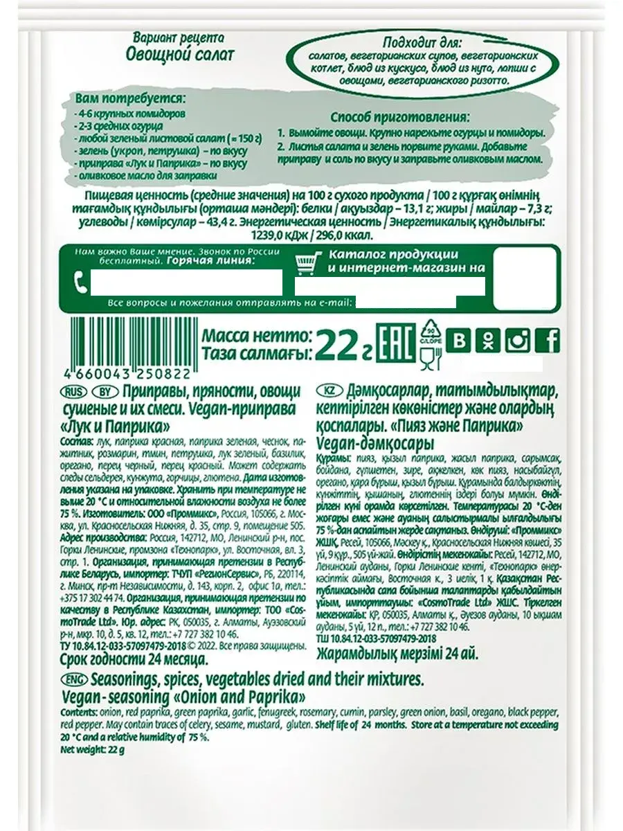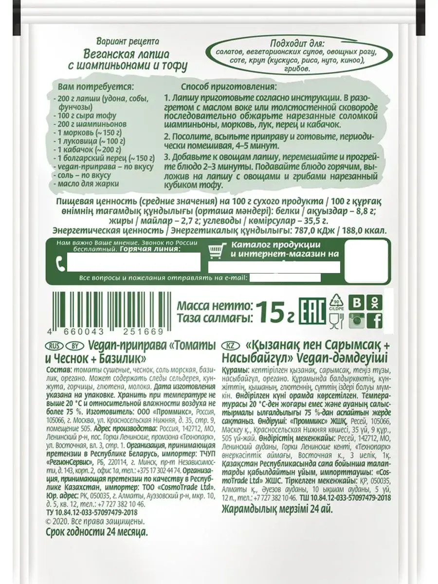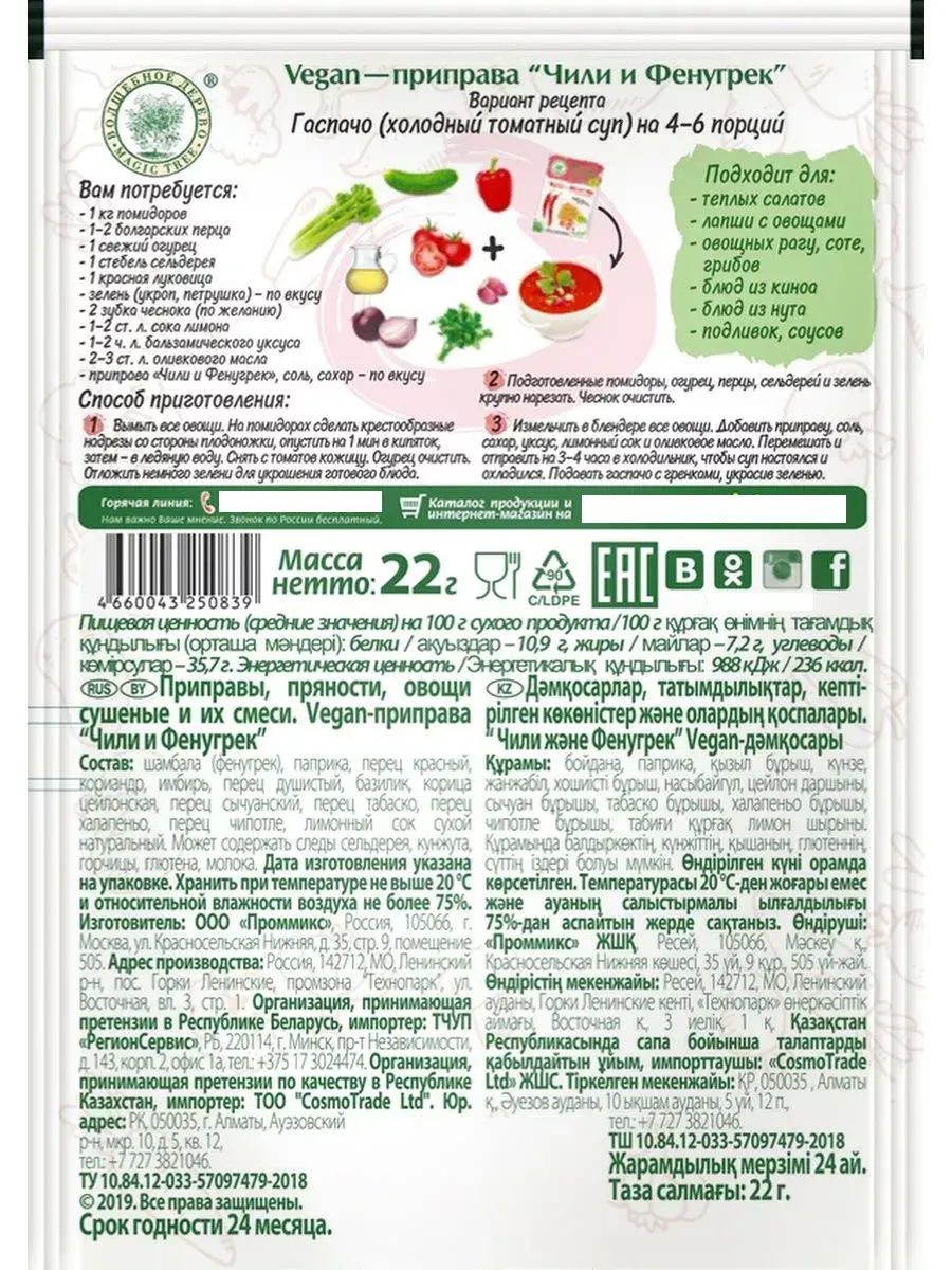 Серия «Vegan» специально разработана для веганов и тех, кто ведет здоровый образ жизни. Хотите изысканный вкус вашего блюда? Не бойтесь импровизировать на вашей кухне. Попробуйте приготовить вегетарианские блюда вкусными и полезными. Веганские блюда будут еще вкуснее и полезнее с приправами "Волшебное дерево". Приправа поможет не только улучшить вкус ваших блюд, но и качество вашей жизни. Подходит для веганских и вегетарианских котлет, пирогов, салатов, различных блюд из круп (кускуса, риса, нута, киноа). В комплекте 5 пакетиков ассорти.