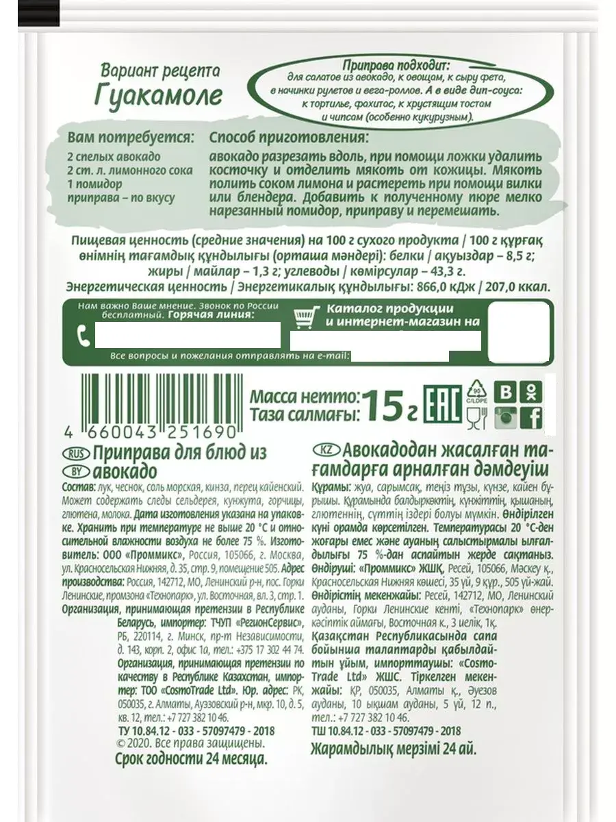 Для блюд из авокадо: лук, чеснок, соль морская, кинза, перец кайенский,