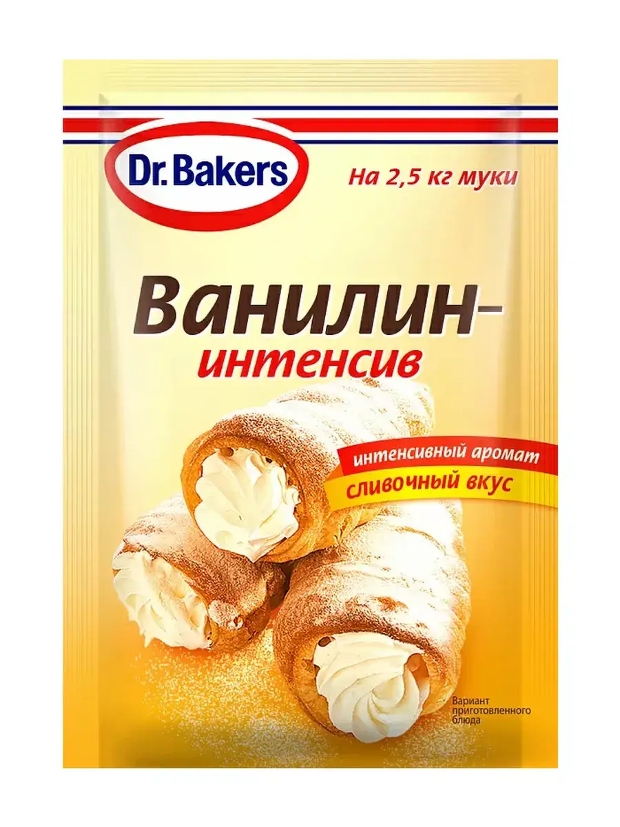 Ароматизатор пищевой Dr.Bakers Ванилин-интенсив 2г, представляет собой вкусоароматическую добавку, которая предназначена для придания блюдам особого запаха и вкуса. Продукт подходит для добавления в десерты и выпечку, каши и мюсли. Он подчеркивает сладковатый вкус изделия. Ароматизатор рекомендуется добавлять в блюдо только в конце приготовления перед последней стадией перемешивания.