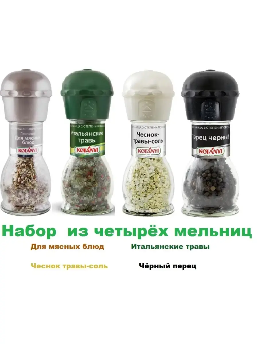 Набор из 4-х мельниц от известного бренда KOTANYI представляет собой идеальное решение для любителей кулинарии, желающих добавить в свои блюда уникальный вкус и аромат. Каждая мельница содержит различные специи, которые идеально подходят для вторых блюд, салатов и супов. Благодаря удобной форме выпуска в мельнице, специи можно легко добавлять в любое блюдо, сохраняя их свежесть и аромат до последнего момента. Выбор KOTANYI гарантирует высокое качество и насыщенный вкус, который порадует даже самых взыскательных гурманов.