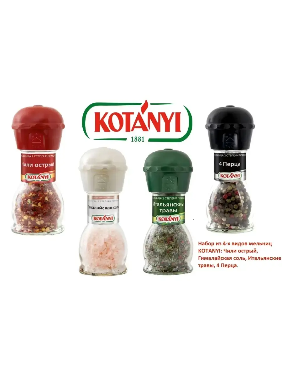 Удобный набор специй как для дома, так и для пикника. Всё всегда под рукой. Также можно подобрать другие наборы у нас. Соль Гималайская подчеркивает вкус мяса, рыбы, овощных блюд и соусов. Смесь целых перцев от Kotanyi дарит неповторимый вкус жареному мясу, рыбе и салатам, а также супам, соусам и блюдам из картофеля. Они также отлично подходят для украшения готового блюда. Итальянские травы идеально подходят для мяса, рыбы, салатов и овощей. Приправу лучше всего добавлять в конце приготовления или выложить на готовые блюда при подаче на стол. Приправа Чили острый придаст пикантную остроту гуляшу, супам, карри, чили кон карне, соусам и пасте. Составы: Полностью натуральная каменная соль. Перец (черный, белый, зеленый, розовый). Йодированная морская соль (морская соль, йодат калия), розмарин, тимьян, паприка, розовый перец, чабер, базилик, эстрагон. Перец чили, морская соль. Может содержать следы: Горчица, Злаки, содержащие глютен, Кунжут, Молоко, Сельдерей, Соя, Яйца.