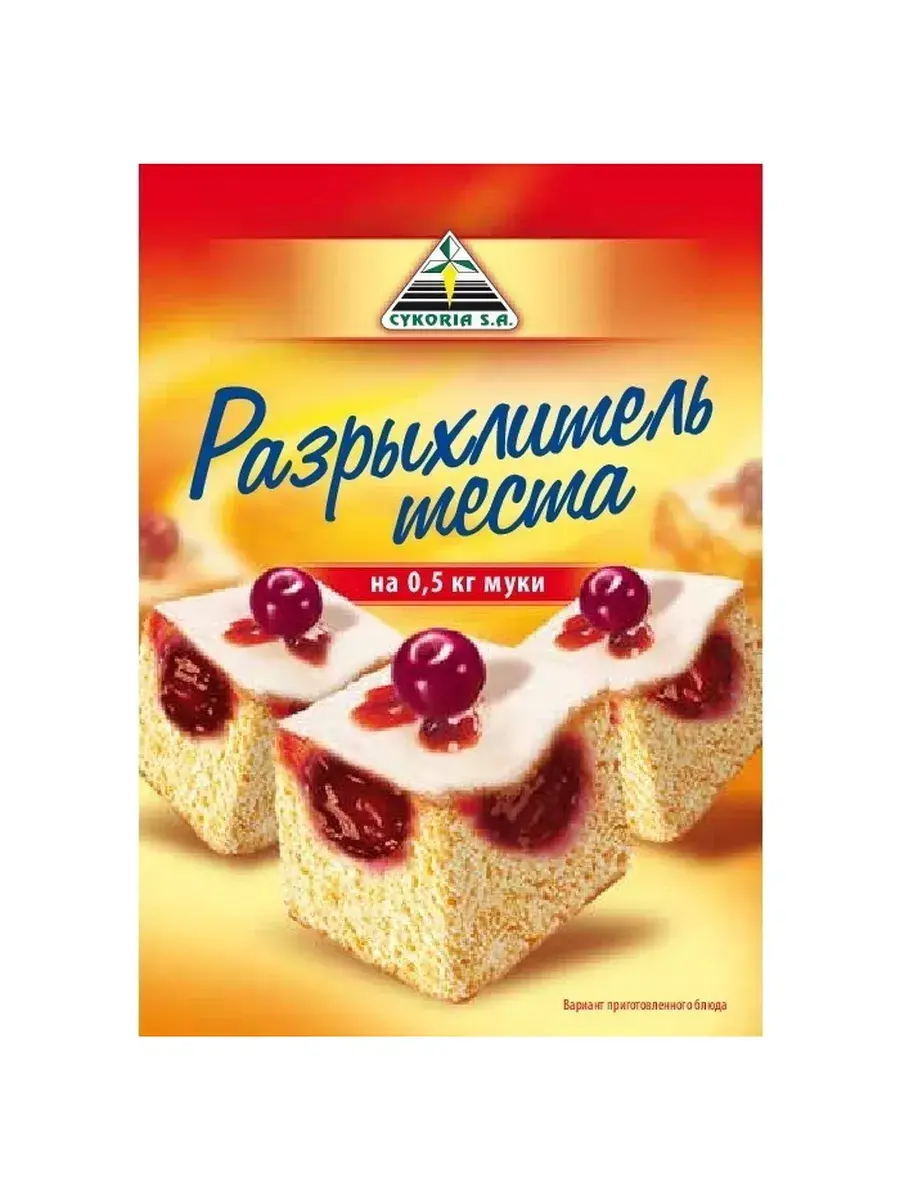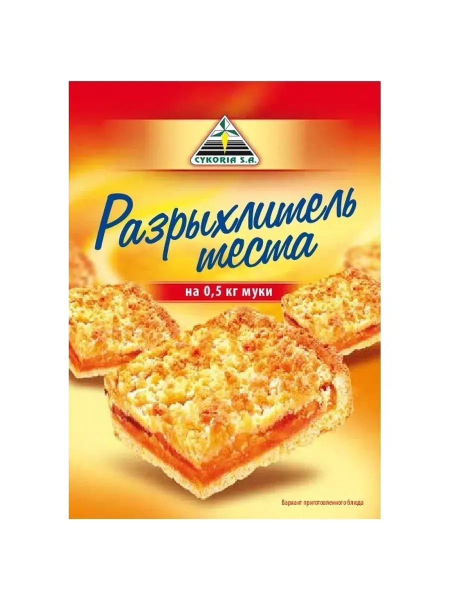 Мягкое тесто для пирогов и сдобы? Пышные воздушные булочки и кексы? Сделать выпечку по-настоящему фантастической и божественно вкусной теперь очень просто! Нужно всего лишь добавить в муку немного разрыхлителя теста "Cykoria S.A.". Из муки с разрыхлителем отлично получаются любые кондитерские или хлебобулочные изделия. Никакой тяжести и спрессованности – тесто будет легким, объемным, с равномерной пористой структурой.