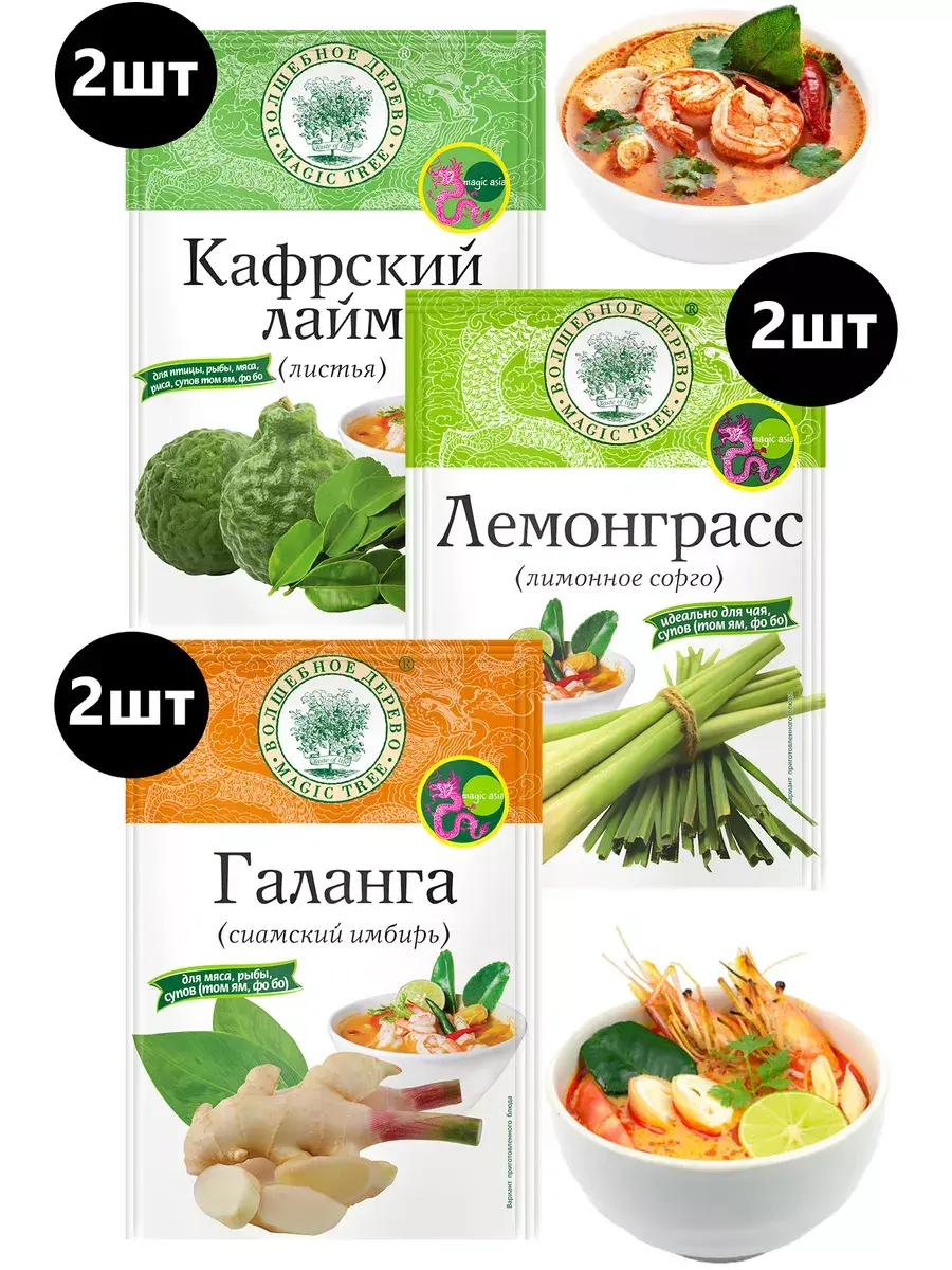 Суп Том Ям – один из самых популярных представителей тайской кухни. Этот нежный и в то же время пряный продукт очень ценится знатоками тайской кулинарии. Под названием набор приправ для том ям скрываются все необходимые пряные продукты, которые отвечают за аромат и вкус бульона для этого супа. Для его приготовления необходимо немало оригинальных ингредиентов, например, листья кафирского лайма, трава лемонграсс, а также корень галангала. Собрать все обязательные ингредиенты для супа не просто, ведь они в Европе попросту не растут. Да и не стоит, ведь сегодня можно запросто купить набор для том ям, в котором уже будут содержаться все необходимые приправы. В наборе по 2 пакетика каждого вида.