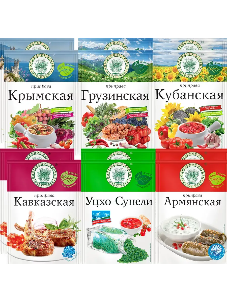 Откройте новые гастрономические горизонты с набором приправ, вдохновленных богатством кулинарных традиций разных регионов. Это настоящее путешествие по вкусам: от ароматной Крымской с ее мягкими нотками лаванды до огненно-пикантной Грузинской с восторженными акцентами уцхо-сунели. Привнесите магию Кубанской приправы с ее волнующим сочетанием паприки и чеснока в вашу кухню, или откройте для себя тайны Армянской смеси, с богатым ароматом кориандра и эстрагона. Не менее удивительны наши приправы из Кавказского региона, в которых сочетаются пряные и травяные ноты, создавая неповторимый вкус. И, конечно же, не забудьте о коронной приправе – уцхо-сунели. Погрузитесь в уникальный мир вкусов с ассорти набором приправ и создайте неповторимые кулинарные шедевры каждый день! В наборе по 2 пакетика каждого вида.