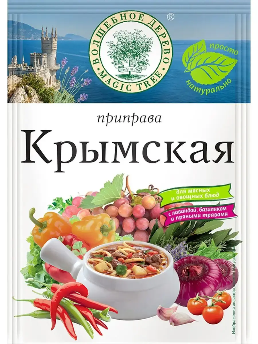 Крымская: соль морская, чеснок, паприка, лук, куркума, лаванда, базилик, орегано,