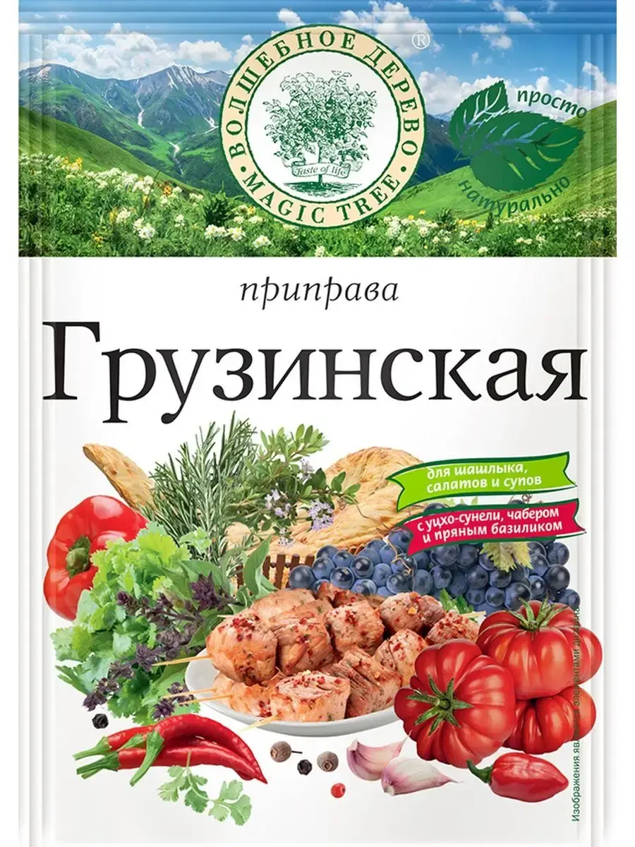 Грузинская: соль морская, кориандр, уцхо-сунели, паприка, куркума, базилик, орегано,