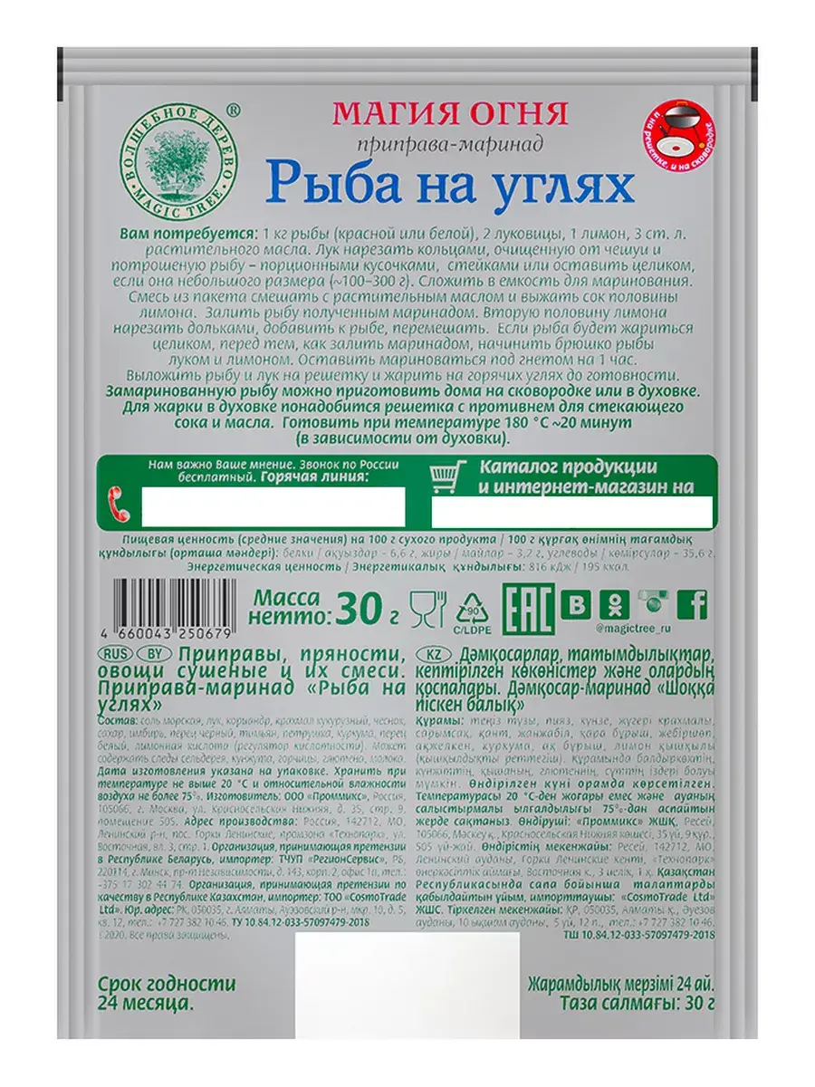 Для Рыбы: соль морская, лук, кориандр, крахмал кукурузный,