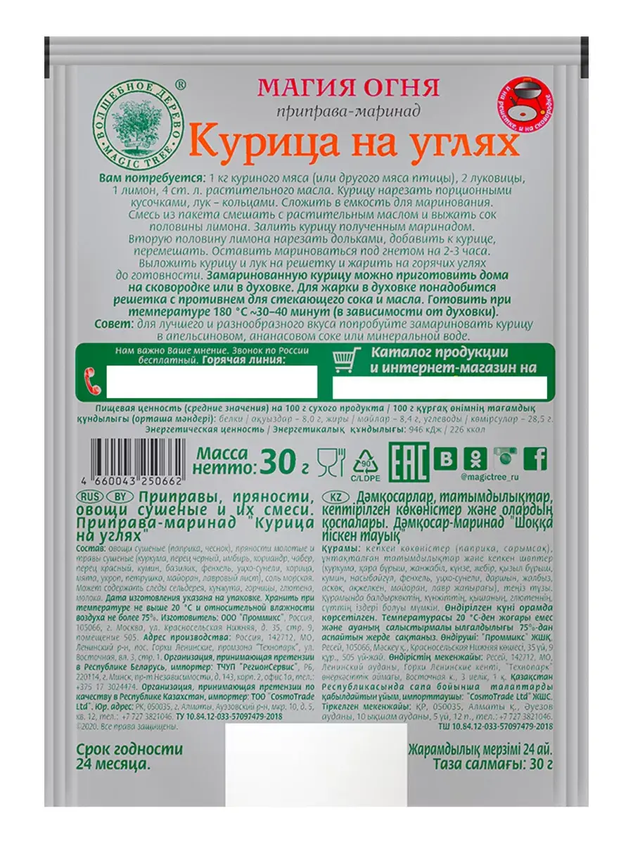 Для Курицы: овощи сушеные (паприка, чеснок), пряности молотые и травы сушеные (куркума,