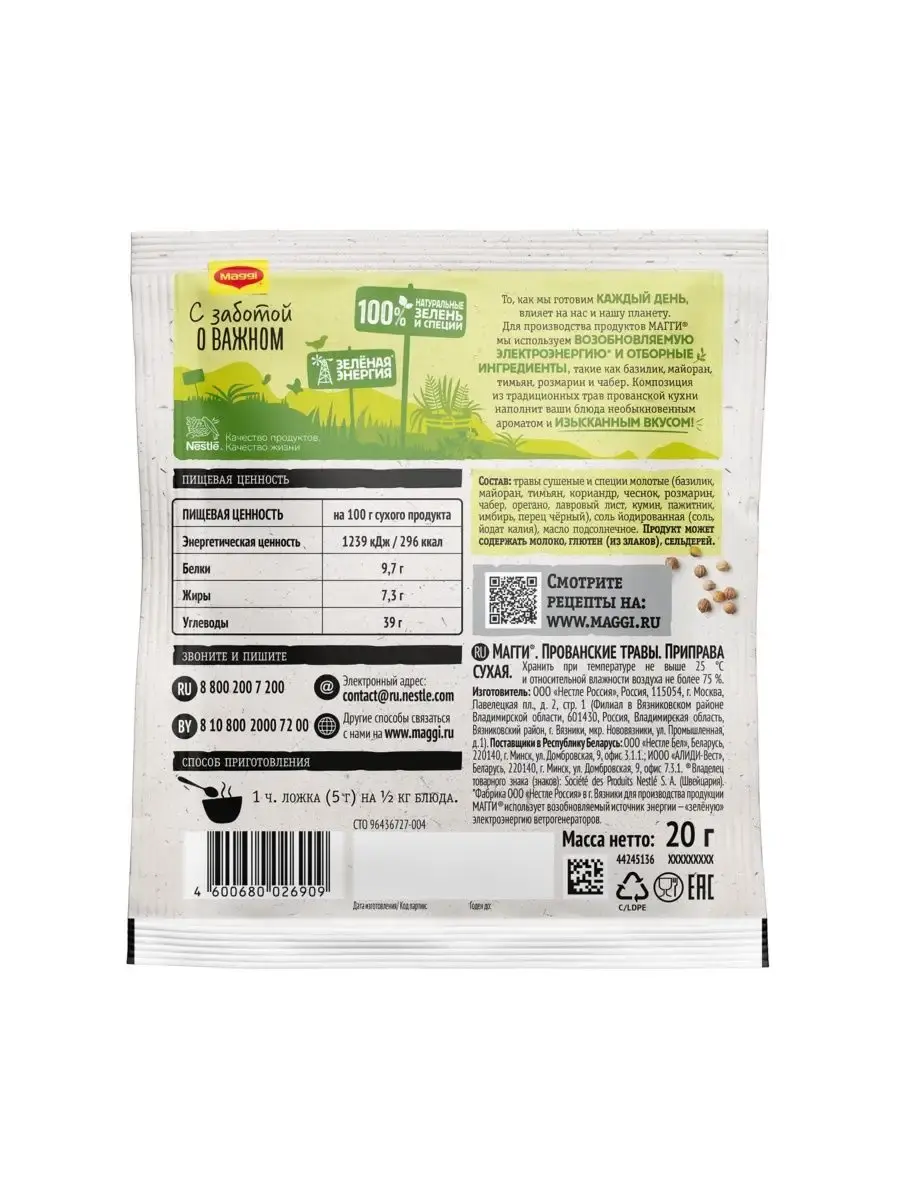 В приправе «Прованские травы» подобрана особая композиция из традиционных трав прованской кухни, таких как душистый базилик, пряный майоран и тимьян, которая наполнит ваши блюда необыкновенным ароматом и изысканным вкусом!