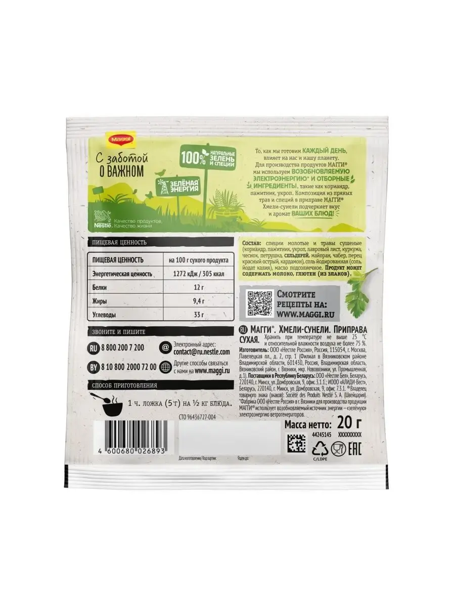 В приправе «Хмели-сунели» подобрана композиция из пряных трав и специй, таких как кориандр, пажитник и ароматный укроп, которая особенно подчеркнет вкус и аромат блюд грузинской кухни!