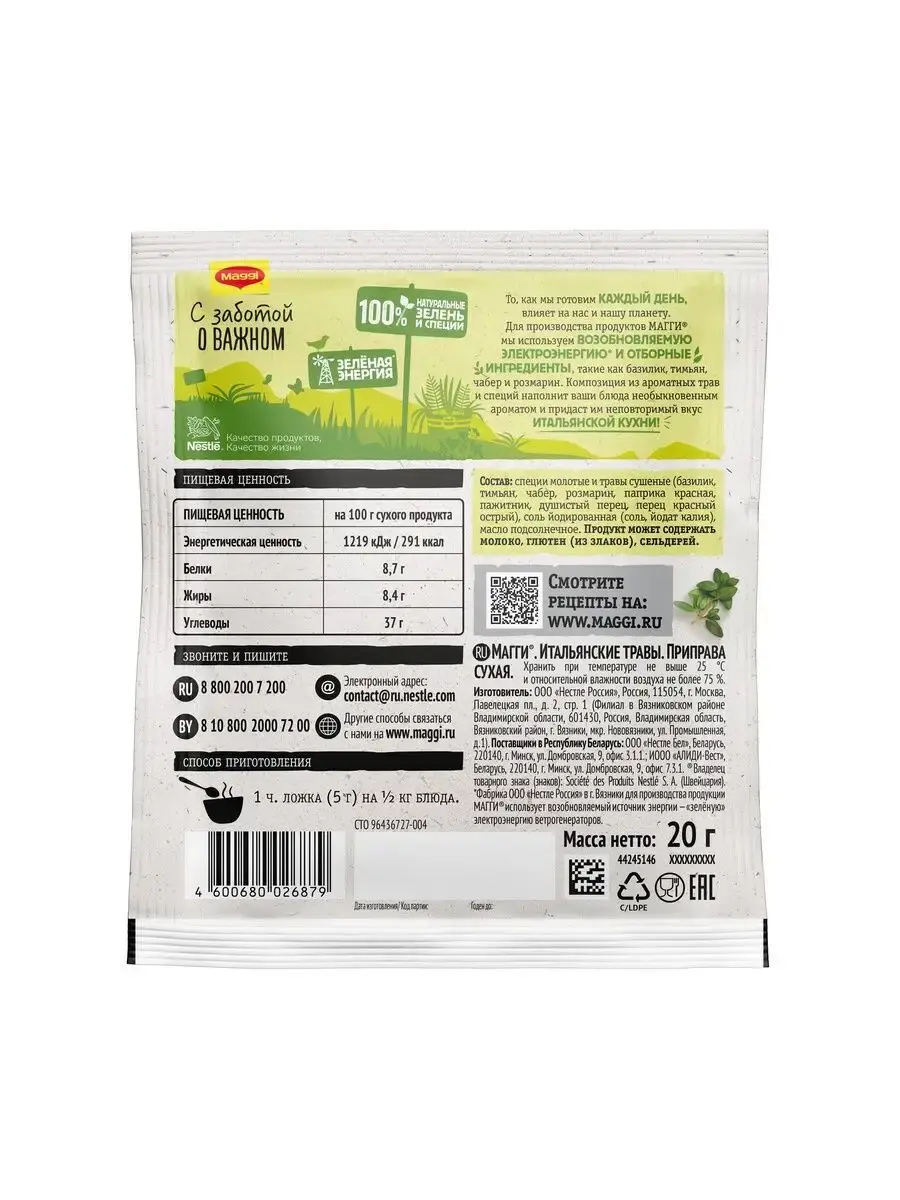 В приправе «Итальянские травы» подобрана композиция из ароматных трав и специй, таких базилик, тимьян, чабер и розмарин, которая наполнит ваши блюда необыкновенным ароматом и придаст им вкус итальянской кухни!