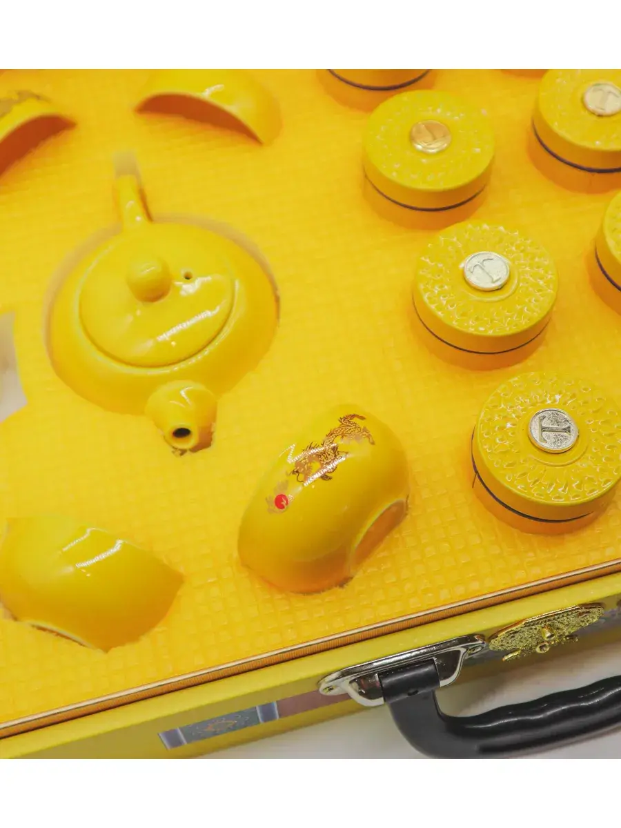 Откройте дверь в мир изысканности и вкуса с чайным набором из Китая, представленным в прекрасном желтом чемоданчике – настоящем символе путешествия к умиротворению и гармонии. Представьте себе мгновение полного расслабления в компании близких друзей или в обители вашей собственной тишины, погруженные в чайную церемонию, которая призвана освежить ум и обновить душу. Набор включает в себя не только элегантный чайный сервиз – с чайником и четырьмя пиалами, но и богатство ароматов и вкусов в каждой баночке с чаем. Да Хун Пао, легендарный китайский улун, представлен в 12 банках по 10 грамм, общим весом 120 грамм – идеальное сочетание для того, чтобы окунуться в мир чайной искусств и насладиться каждым глотком этого изысканного напитка. Дарите себе или своим близким возможность окунуться в чайную традицию с чудесным набором из Китая. Позвольте этому чемодану стать вашим проводником в удивительный мир вкусов и ароматов, где каждая чашка чая – это маленькое путешествие к гармонии и блаженству.