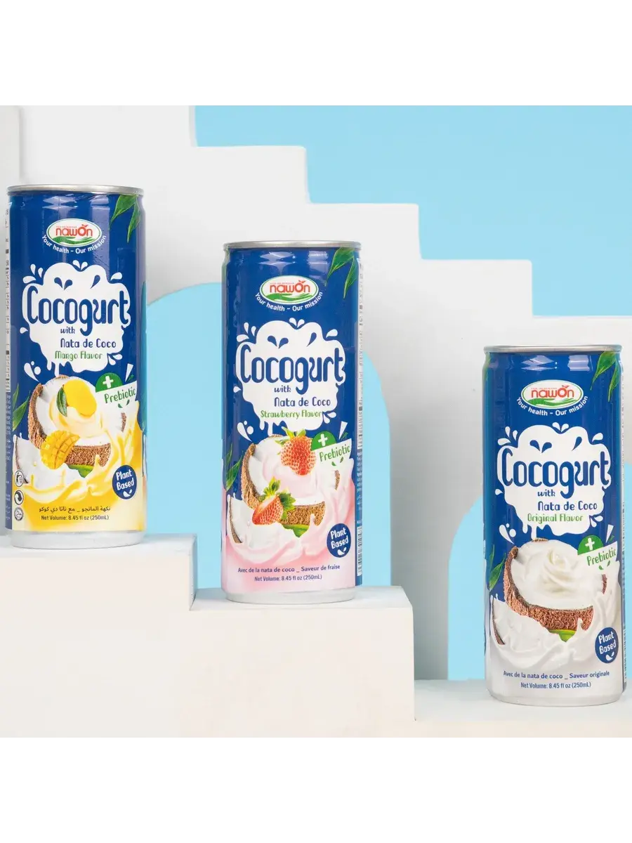 Кокогурт – это напиток, который сочетает в себе бархатистую прелесть кокосового молока и пикантную насыщенность йогурта. Подходит для людей с чувствительностью к лактозе и отвечает предпочтениям людей, заботящихся о своем здоровье и ищущих полезную альтернативу молочным продуктам. Сочетает в себе кокосовое молоко, кокосовую воду и природный пребиотик, который содержится в камеди акации (смола из различных видов акаций). По текстуре напиток напоминает йогурт: легкий, питательный, обладающий бархатистой консистенцией. Кокосовая мякоть, входящая в состав напитка, содержит множество полезных микроэлементов и витаминов, антиоксидантов и природных масел, является идеальным источником клетчатки. Аравийская камедь (смола акации), считается полезной альтернативой сахару. Она не вызывает скачков глюкозы в крови. Также в напитке содержится кокосовая вода, которая восстанавливает баланс электролитов, повышает умственную и физическую активность, снижает уровень стресса, благотворно влияет на пищеварение. В коробке 24 банки по 250мл.