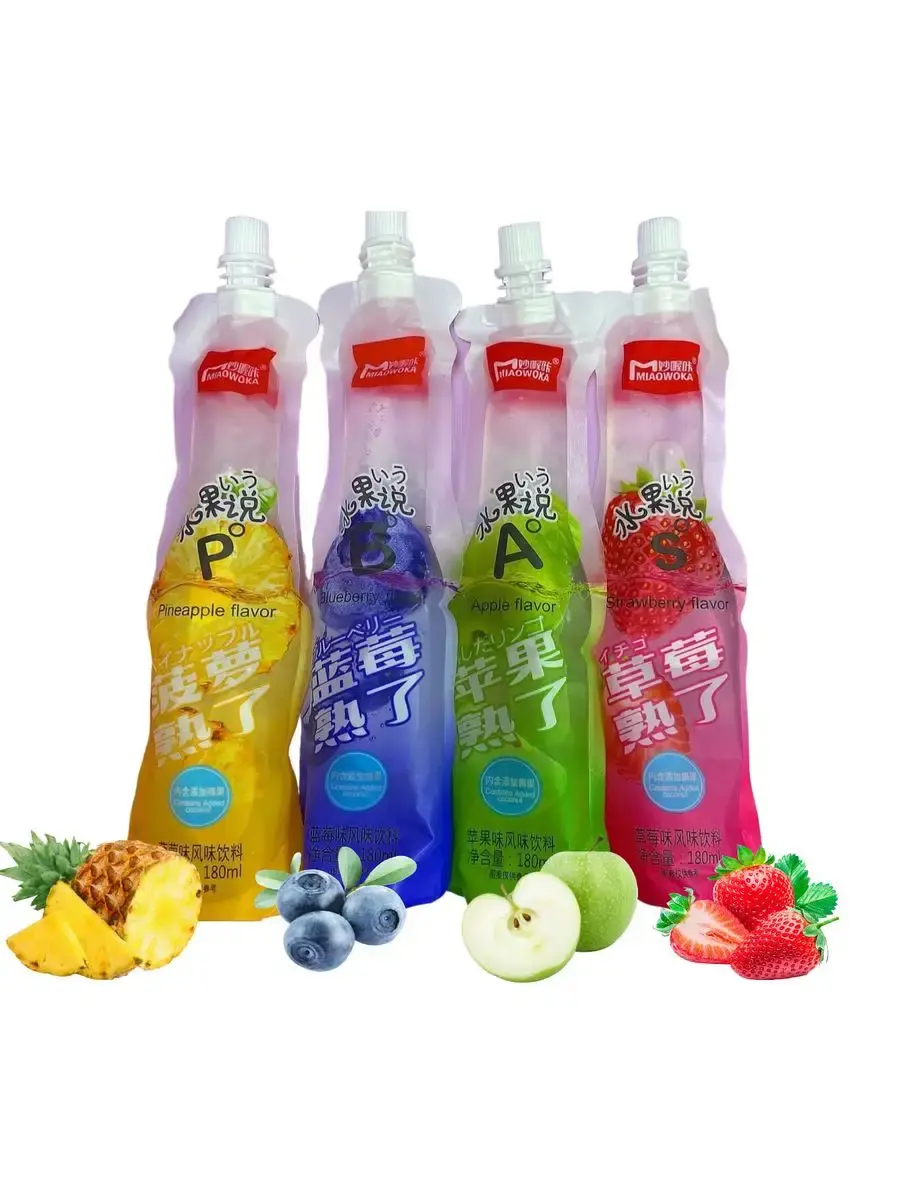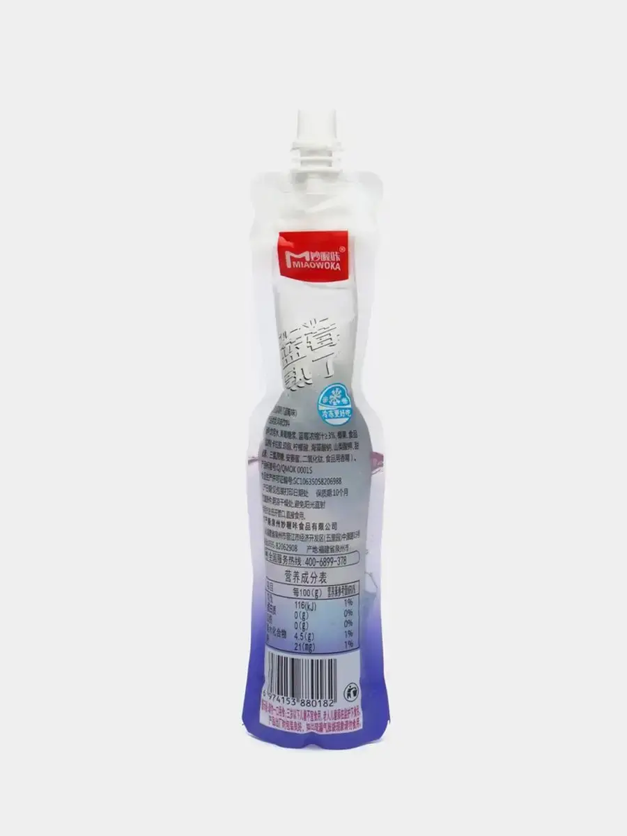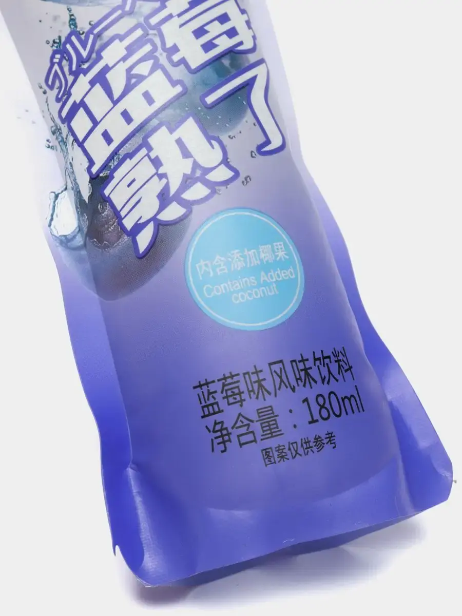 Фрутовый напиток с содержанием кокосового сока и кусочками желе в мягкой упаковке.