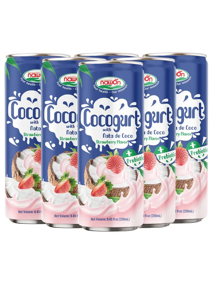 Кокогурт – это напиток, который сочетает в себе бархатистую прелесть кокосового молока и пикантную насыщенность йогурта. Подходит для людей с чувствительностью к лактозе и отвечает предпочтениям людей, заботящихся о своем здоровье и ищущих полезную альтернативу молочным продуктам. Сочетает в себе кокосовое молоко, кокосовую воду и природный пребиотик, который содержится в камеди акации (смола из различных видов акаций). По текстуре напиток напоминает йогурт: легкий, питательный, обладающий бархатистой консистенцией. Кокосовая мякоть, входящая в состав напитка, содержит множество полезных микроэлементов и витаминов, антиоксидантов и природных масел, является идеальным источником клетчатки. Аравийская камедь (смола акации), считается полезной альтернативой сахару. Она не вызывает скачков глюкозы в крови. Также в напитке содержится кокосовая вода, которая восстанавливает баланс электролитов, повышает умственную и физическую активность, снижает уровень стресса, благотворно влияет на пищеварение. В комплекте 6 банок по 250мл.