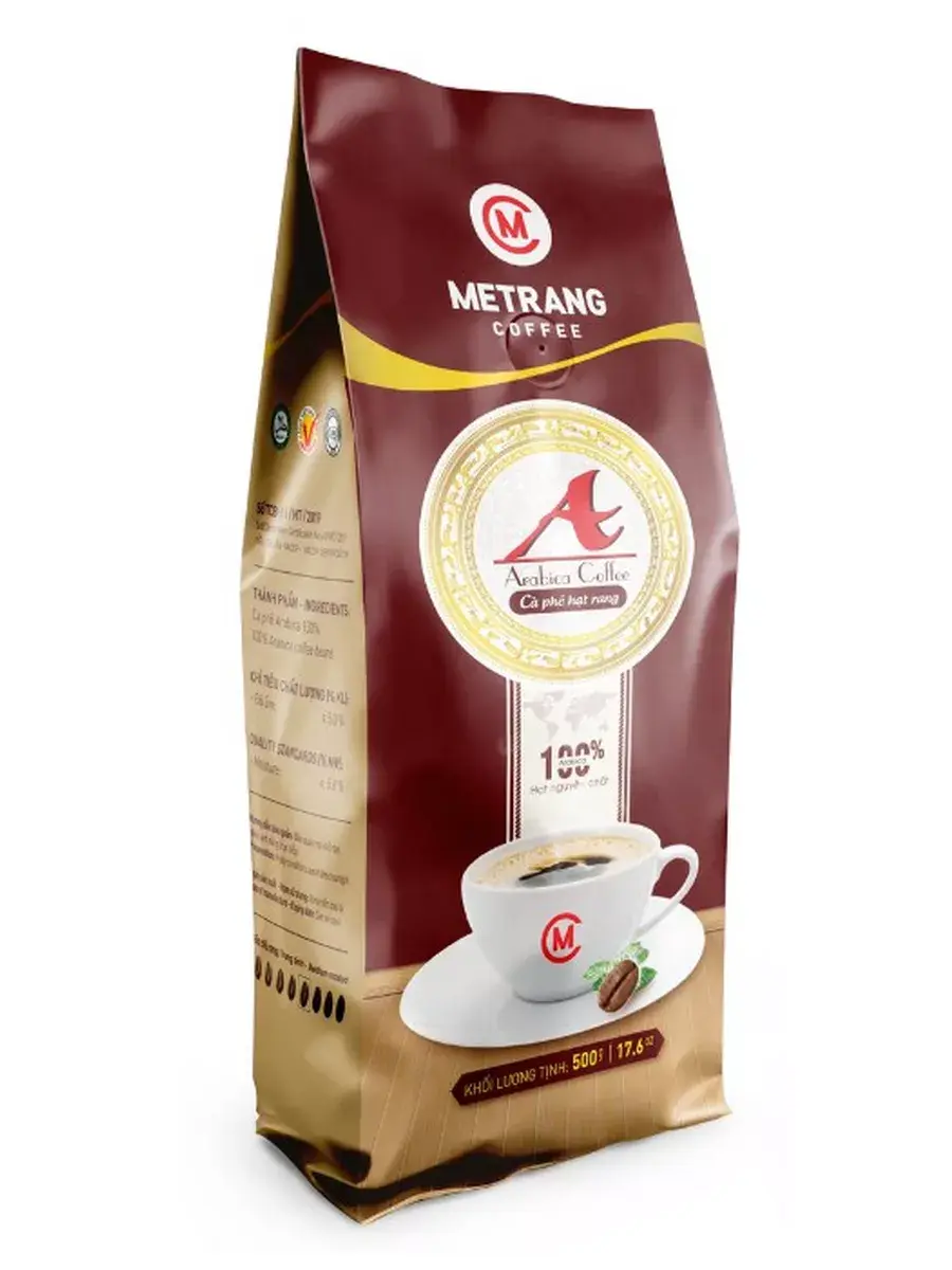 Кофе Me Trang Arabica в зернах 500 г – один из популярнейших на своей родине блендов именитого производителя. Для его производства используется только лучшая средне обжаренная арабика. Для обеспечения сохранности зерна продукт упаковывается в вакуумные пачки объемом 0,5 кг из многослойной фольги с обратным клапаном. В заваренном виде зерновой кофе характеризуется средним уровнем кофеина (1,1-1,2%), крепкой пенкой, волнительным благоуханием и сладковатым профилем с оттенками пряностей, сочных фруктов, шоколада и утонченной кислинкой.
