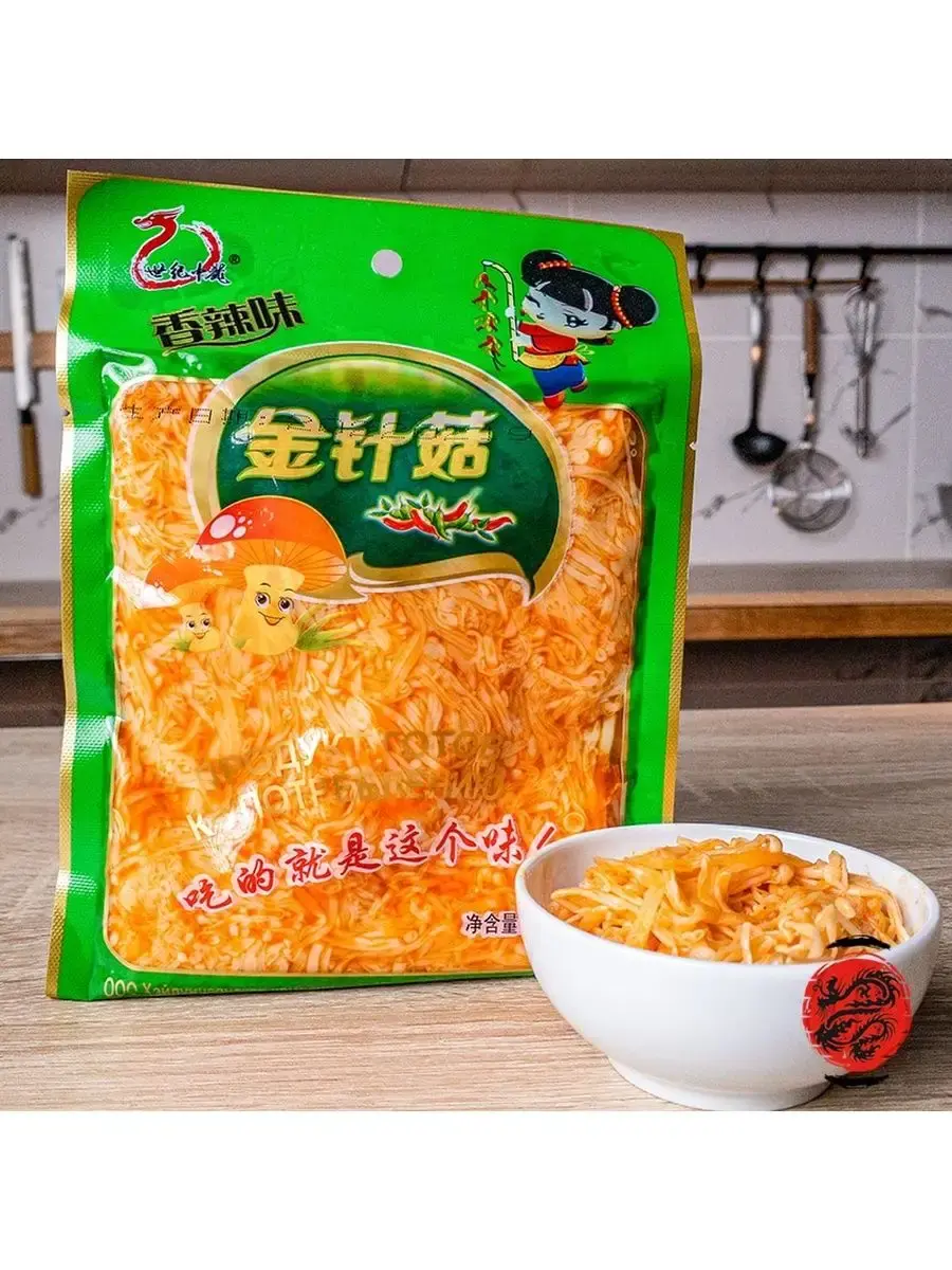 Эноки или оценок зимний - маленькие грибы на длинных, тонких ножках с маленькими шляпками. Сочетаются со всеми продуктами. Улучшают пищеварение и считаются диетическим продуктом, так как не содержат холестерин.