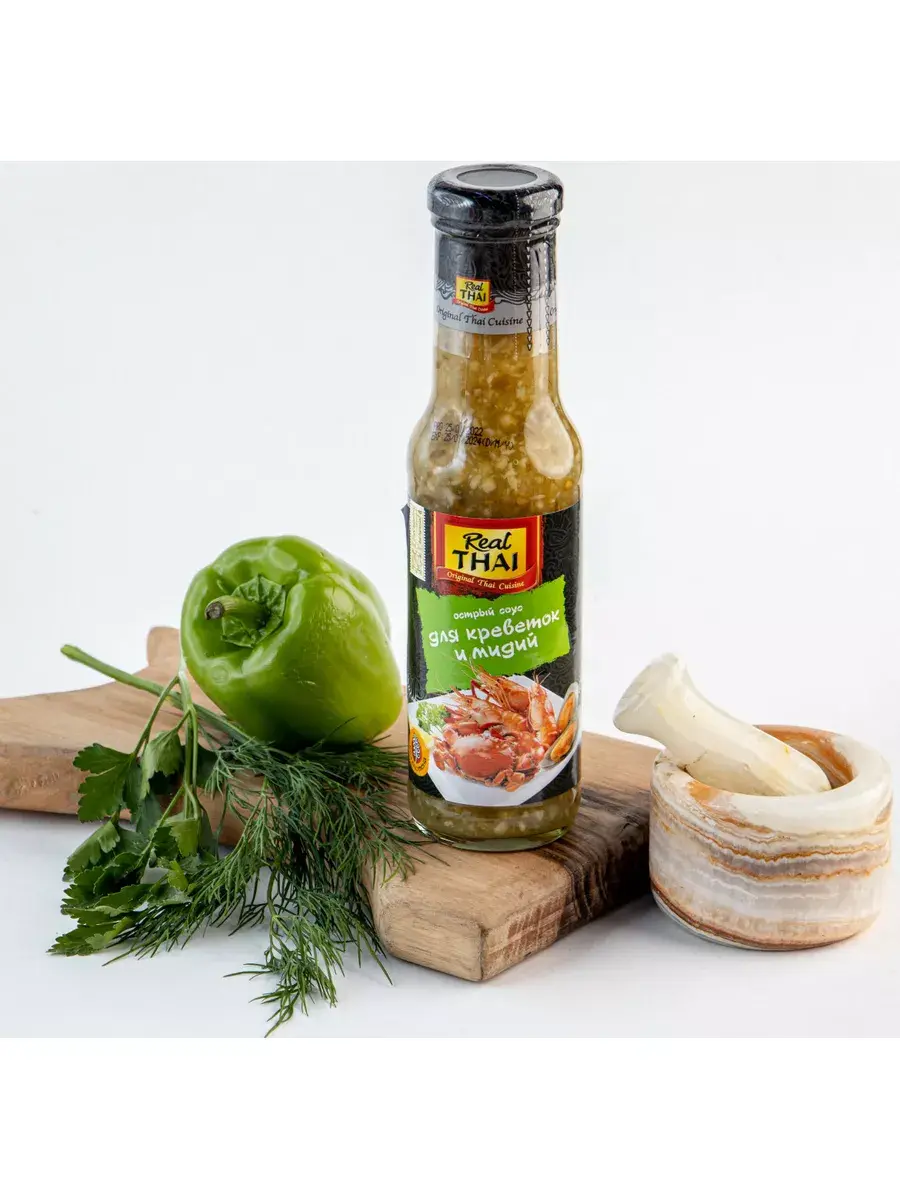Острый соус для креветок и мидий от торговой марки Real Thai отлично сочетается с естественным вкусом морепродуктов и придает им приятную пикантность. Благодаря ему пища лучше усваивается и доставляет заметно больше удовольствия. Продукт изготавливается из натуральных ингредиентов и отличается высоким качеством. Используйте этот соус как дип-соус к вашим любимым морепродуктам (креветкам, крабам, устрицам и другим) или маринуйте морепродукты, запекайте рыбу. В наборе 2 индивидуальные упаковки по 315 грамм.