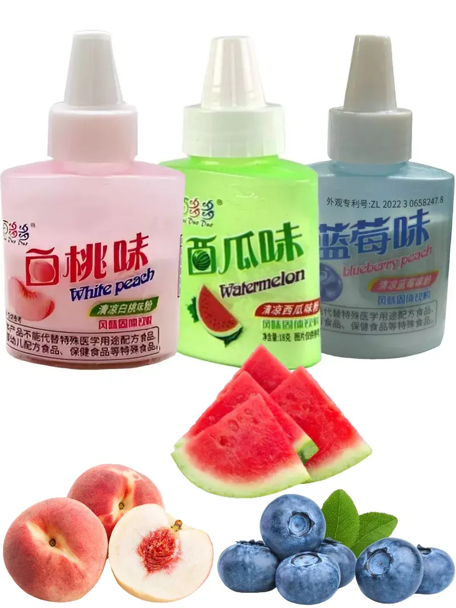 Необычный десерт —освежающая фруктовая пудра! Ее можно употреблять в сухом виде, как дополнительный ингредиент добавлять к различным десертам или разводить с водой прям в бутылке. Порадуйте себя и своих близких такой необычной вкусняшкой из Китая. С пудрой процесс приготовления привычных десертов превратится в увлекательное развлечение, а сами десерты обретут новый освежающий вкус! По-настоящему летний десерт со вкусом арбуза, белого персика и черники! В комплекте 20 индивидуальных бутылочек по 16г каждая, ассорти вкусов.