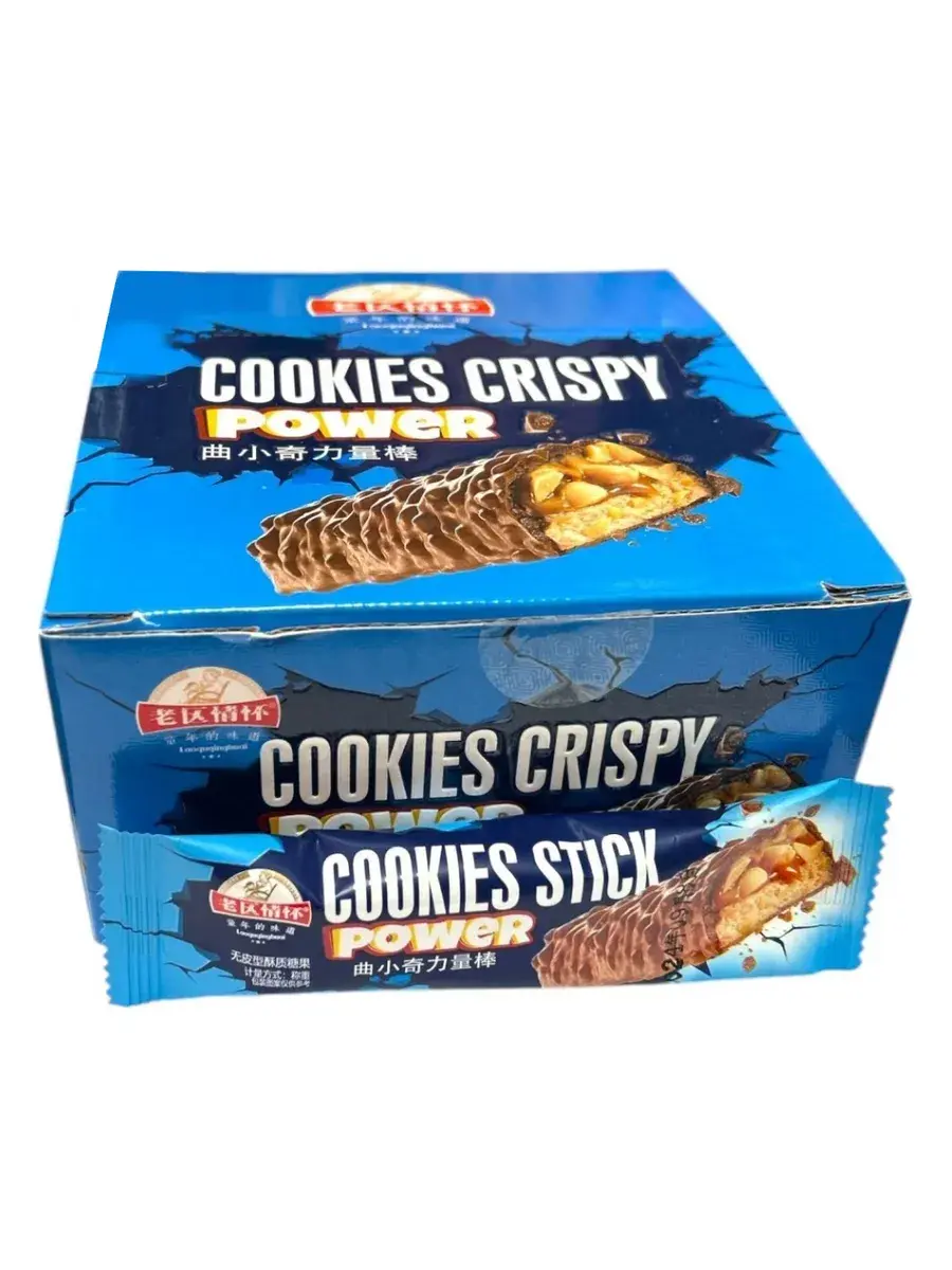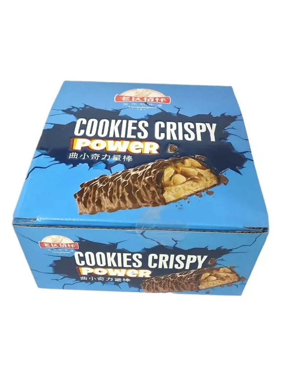 "Cookies Crispy Power" – хрустящее печенье, тягучая карамель, ароматный арахис и густой молочный шоколад в одном батончике! Это не просто перекус — это момент удовольствия, который заряжает на целый день. Хрустящее печенье — основа идеального перекуса. Тягучая карамель — сладкая нежность, которая покорит тебя. Арахис — легкий ореховый хруст и заряд энергии. Молочный шоколад — завершение этого шедевра вкуса. Идеально подходит для работы, учебы или активного отдыха. Один укус, и ты готов к новым свершениям! В блоке 20 штук.