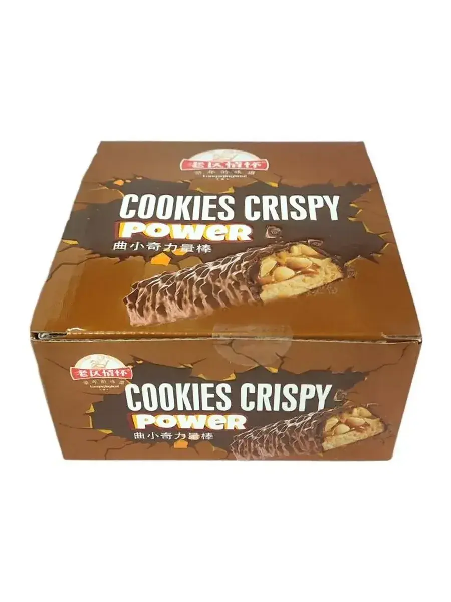 "Cookies Crispy Power" – хрустящее печенье, тягучая карамель, ароматный арахис и густой молочный шоколад в одном батончике! Это не просто перекус — это момент удовольствия, который заряжает на целый день. Хрустящее печенье — основа идеального перекуса. Тягучая карамель — сладкая нежность, которая покорит тебя. Арахис — легкий ореховый хруст и заряд энергии. Молочный шоколад — завершение этого шедевра вкуса. Идеально подходит для работы, учебы или активного отдыха. Один укус, и ты готов к новым свершениям! В блоке 20 штук.