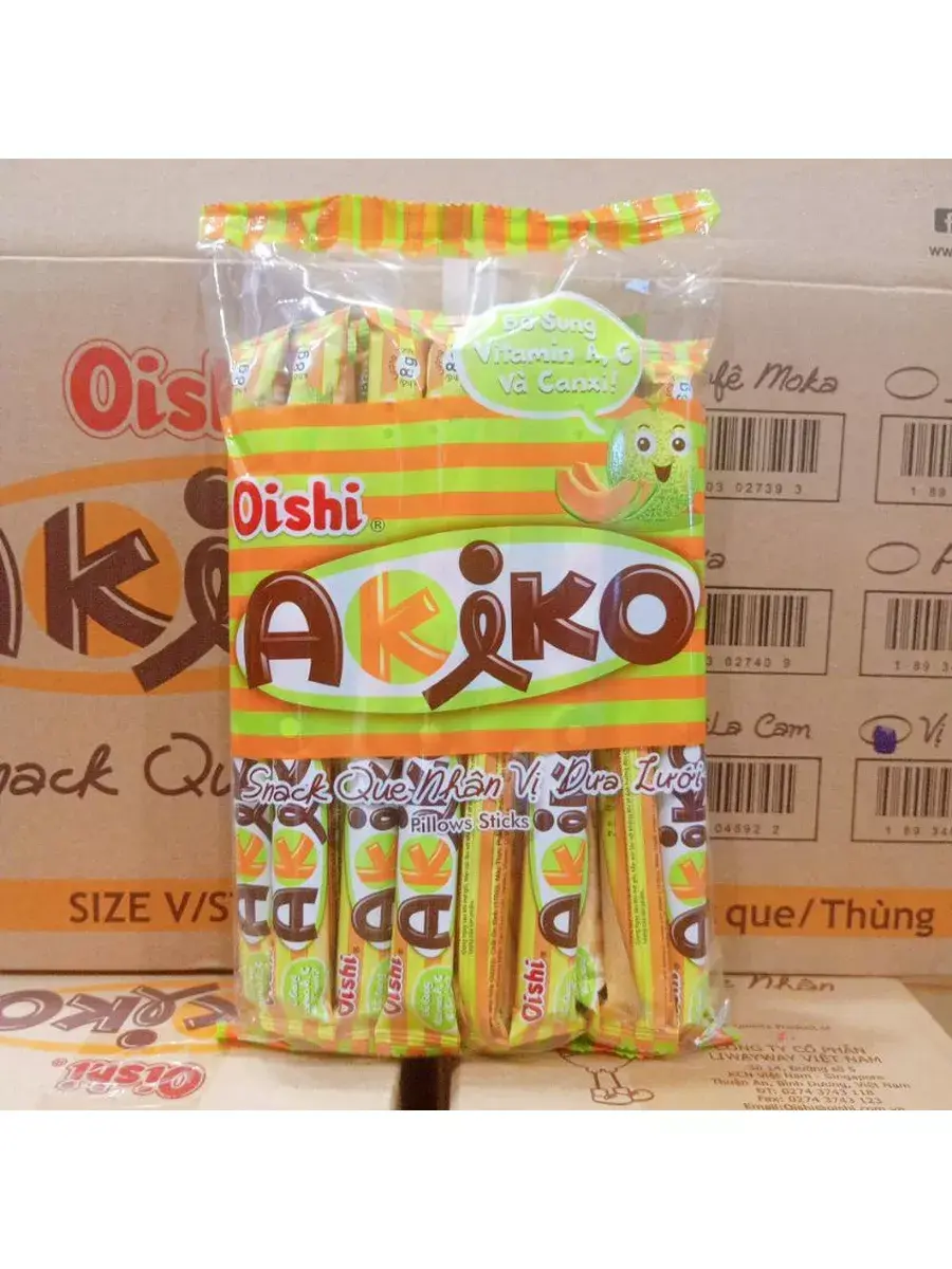 Печенье трубочки с насыщенной начинкой Akiko из Вьетнама, имеют приятную хрустящую текстуру. Это лакомство очень популярно на вьетнамском рынке и нравится как детям, так и взрослым. Каждая трубочка в индивидуальной упаковке для сохранения вкуса и аромата. Их можно взять с собой на работу или в школу в качестве перекуса, они отлично сочетаются с молоком или чаем. Продукт содержит витамины А, С и кальций, именно поэтому трубочки не только вкусные, но и полезные. В линейке Oishi Akiko представлено множество разных вкусов, попробуйте их все и выберите свой самый любимый.