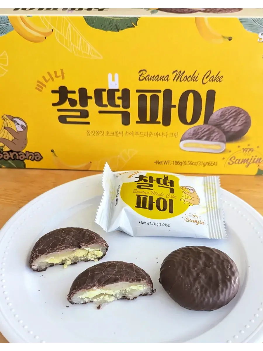 Моти в шоколаде с банановой начинкой от торговой марки Samjin – это десерт, от которого невозможно оторваться. Оно изготовлено из рисовой и пшеничной муки, сухих растительных сливок. Внутри печенья – сладкая начинка. Мягкое рисовое тесто превосходно сочетается с банановой начинкой. Это традиционное лакомство не оставит равнодушными поклонников азиатской культуры и станет идеальным дополнением к чаепитию. Оригинальный десерт из Кореи. Каждая порция упакована в отдельный фольгированный пакет. Моти в шоколаде с миндалем имеют нежную текстуру и служат неисчерпаемым источником наслаждения. В упаковке 6 штук.