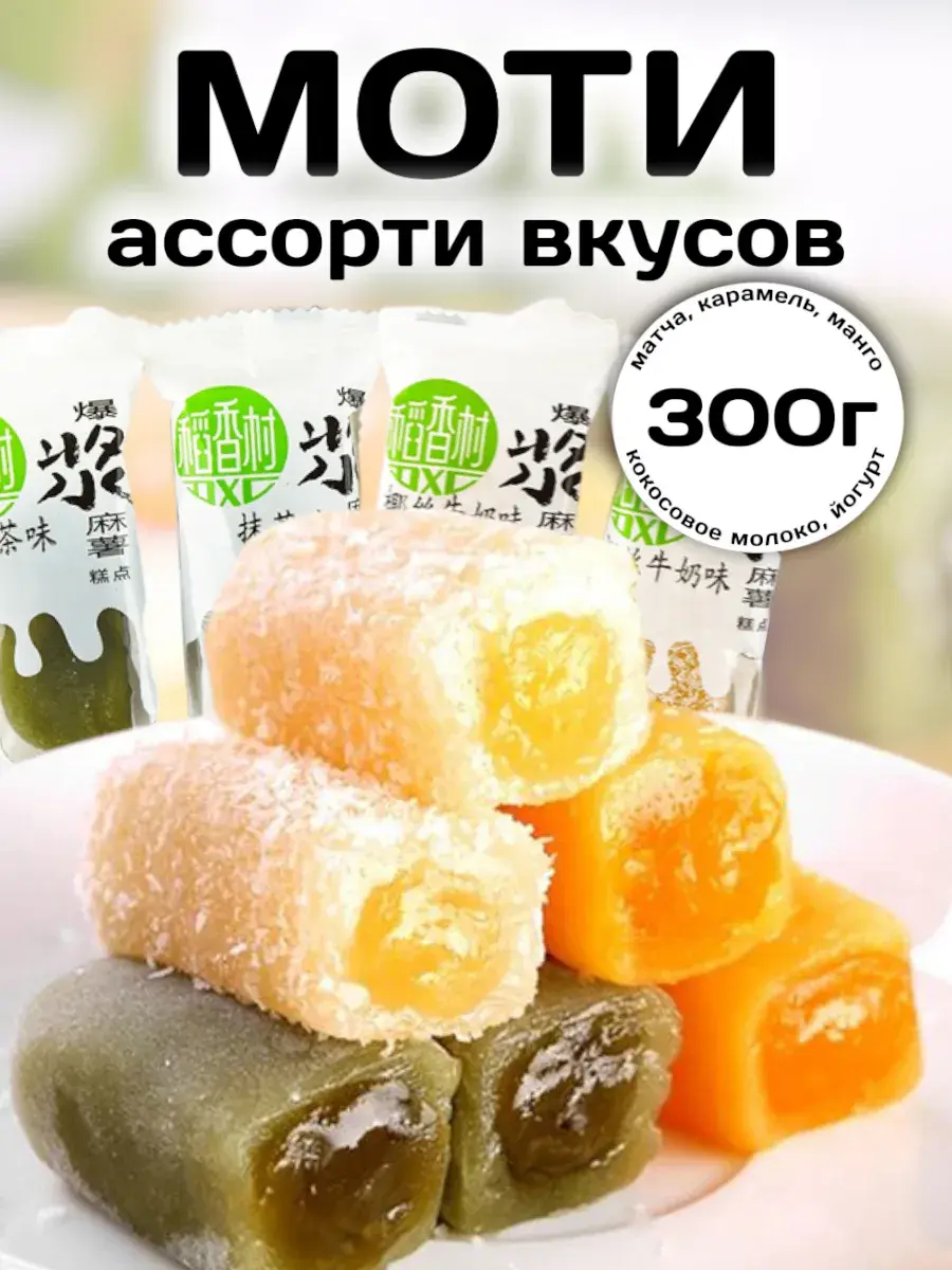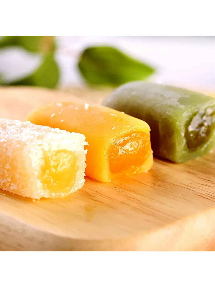 Тонкое, эластичное рисовое тесто моти словно шёлковая вуаль обнимает бархатистую начинку — и в этот миг обычный перекус превращается в маленький ритуал удовольствия. Наши моти с начинкой — это идеальный десерт для ценителей: каждое пирожное аккуратно сформовано, внутри раскрывается либо яркая фруктовая нота манго, либо нежный крем с карамельным или молочным характером, а также классическая матча. Каждое пирожное упаковано отдельно в прозрачную герметичную обёртку: индивидуальная упаковка сохраняет свежесть и форму, делает моти удобными для подарков и идеально подходящими для подарочных наборов. Упаковка без лишних хлопот — никаких крошек, гигиенично и эстетично — поэтому наши моти отлично подходят для офиса, пикника, семейного чаепития и как оригинальный подарок.