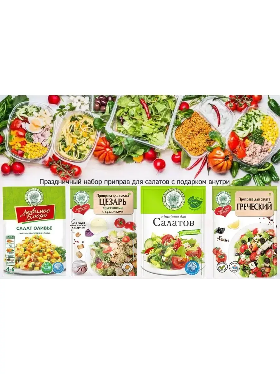 Набор приправ для салатов. Для салата оливье, цезаря, греческого и универсальный. Идеально подойдут для любого праздника.