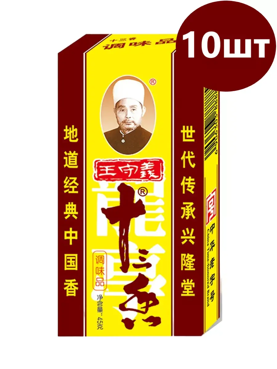 Всемирно известная популярная приправа Маласянь используется в различных блюдах китайской кухни. Ею приправляют супы мясные и рыбные бульоны, овощные блюда, салаты, фучжу и лапшу. Китайцы говорят, что с эта приправа придает блюдам особенный вкус, от простого огурца, до соленой рыбки. Китайская приправа Тринадцать специй - популярная приправа из смеси сушеных пряностей. Вкус у этой приправы пряный, доминирующим ароматом является запах бадьяна. 13 специй применяют при приготовлении мяса (особенно баранины и говядины), овощей, лапши и мясных начинок. Эту приправу добавляют для ароматизации в супы и салаты, применяют при солении огурцов, мариновании овощей, добавляют в блюда с кимчи для улучшения вкуса. При приготовлении блюд из жареного мяса рекомендуется использовать 2-4 грамма приправы на порцию, а для вегетарианских блюд - 1-3 грамма на порцию. Стандартной упаковки 45 граммов достаточно для приготовления 5-7 кг мясного фарша или 7-9 кг вегетарианской начинки. В комплекте 10 пачек по 45г.