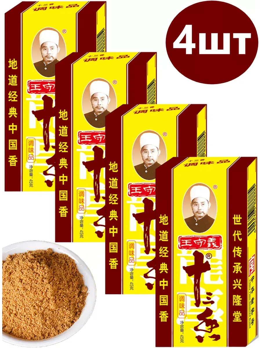 Всемирно известная популярная приправа Маласянь используется в различных блюдах китайской кухни. Ею приправляют супы мясные и рыбные бульоны, овощные блюда, салаты, фучжу и лапшу. Китайцы говорят, что с эта приправа придает блюдам особенный вкус, от простого огурца, до соленой рыбки. Китайская приправа Тринадцать специй - популярная приправа из смеси сушеных пряностей. Вкус у этой приправы пряный, доминирующим ароматом является запах бадьяна. 13 специй применяют при приготовлении мяса (особенно баранины и говядины), овощей, лапши и мясных начинок. Эту приправу добавляют для ароматизации в супы и салаты, применяют при солении огурцов, мариновании овощей, добавляют в блюда с кимчи для улучшения вкуса. При приготовлении блюд из жареного мяса рекомендуется использовать 2-4 грамма приправы на порцию, а для вегетарианских блюд - 1-3 грамма на порцию. Стандартной упаковки 45 граммов достаточно для приготовления 5-7 кг мясного фарша или 7-9 кг вегетарианской начинки. В комплекте 4 пачки по 45г.