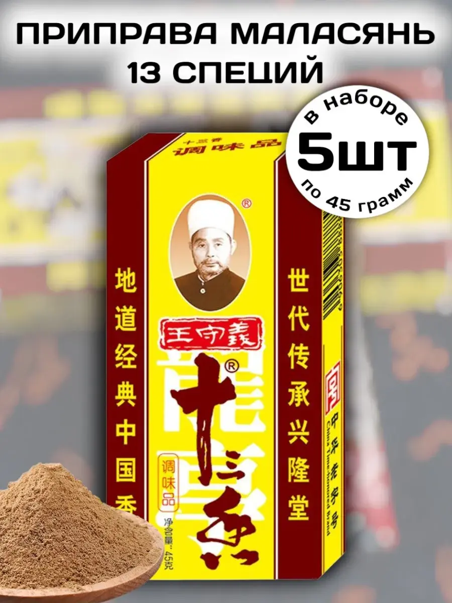 Всемирно известная популярная приправа Маласянь используется в различных блюдах китайской кухни. Ею приправляют супы мясные и рыбные бульоны, овощные блюда, салаты, фучжу и лапшу. Китайцы говорят, что с эта приправа придает блюдам особенный вкус, от простого огурца, до соленой рыбки. Китайская приправа Тринадцать специй - популярная приправа из смеси сушеных пряностей. Вкус у этой приправы пряный, доминирующим ароматом является запах бадьяна. 13 специй применяют при приготовлении мяса (особенно баранины и говядины), овощей, лапши и мясных начинок. Эту приправу добавляют для ароматизации в супы и салаты, применяют при солении огурцов, мариновании овощей, добавляют в блюда с кимчи для улучшения вкуса. При приготовлении блюд из жареного мяса рекомендуется использовать 2-4 грамма приправы на порцию, а для вегетарианских блюд - 1-3 грамма на порцию. Стандартной упаковки 45 граммов достаточно для приготовления 5-7 кг мясного фарша или 7-9 кг вегетарианской начинки.