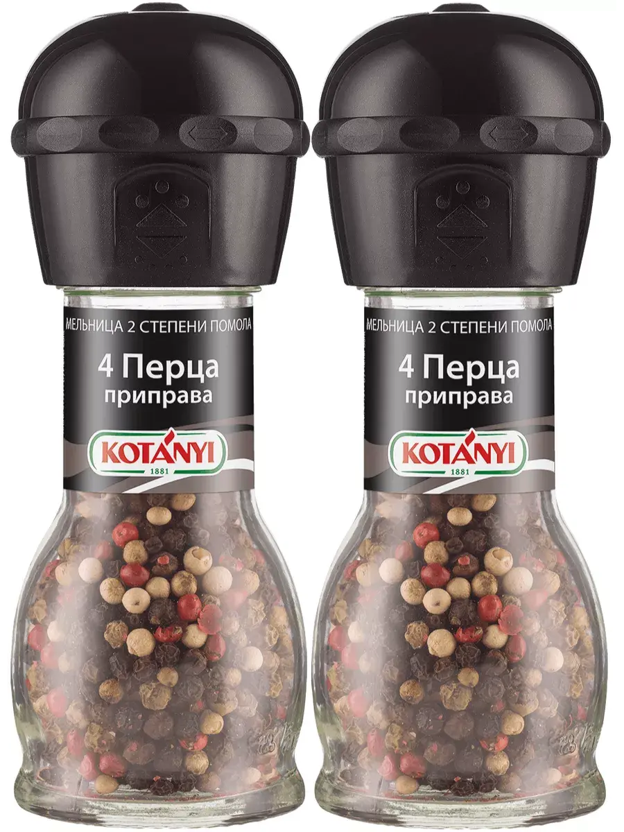 Смесь перцев от Kotányi — настоящее сокровище. Приправа обладает мягким, приятным, ярко выраженным ароматом, за который ее так любят гурманы. Смесь целых перцев от Kotányi дарит неповторимый вкус жареному мясу, рыбе и салатам, а также супам, соусам и блюдам из картофеля. Они также отлично подходят для украшения готового блюда. Крупный или мелкий помол, с нашими мельница вы получите идеальный результат для любого блюда. А стеклянную часть мельницы можно сдать на переработку. В комплекте 2 мельницы по 35г.