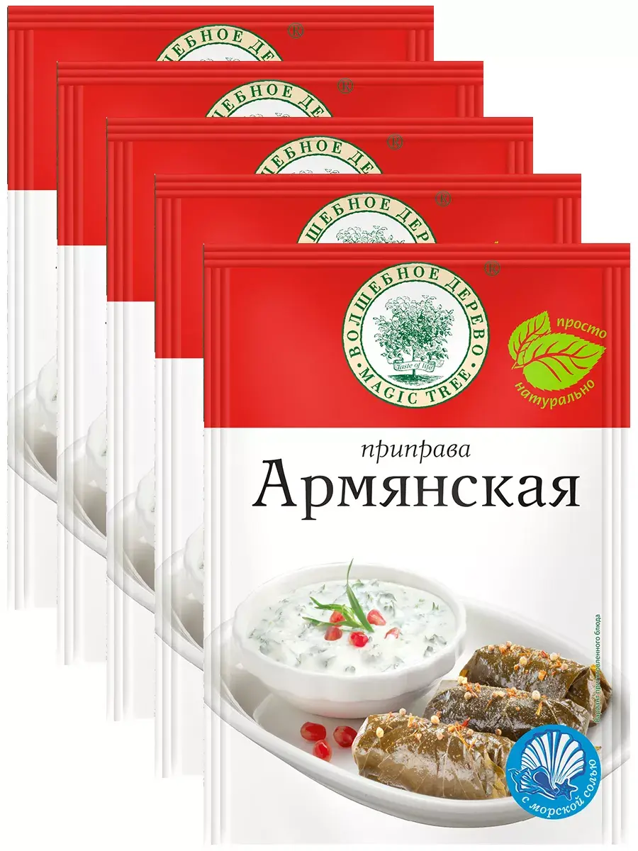 Приправа содержит пряности и травы, характерные для национальной армянской кухни. Отлично подходит для приготовления долмы, бозбаша, керусуса, любых блюд из баранины. В комплекте 5 пакетиков по 30г.