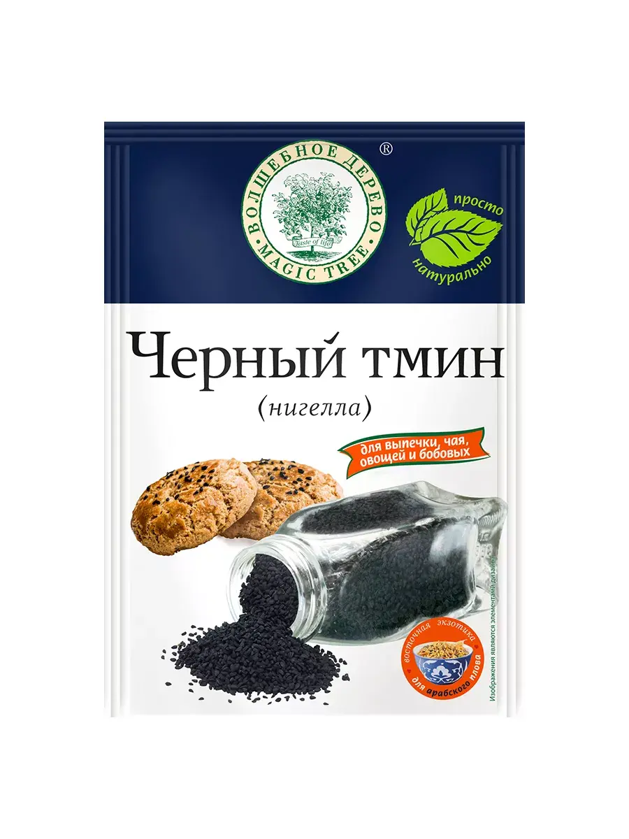 Черный тмин придает блюдам горьковатый пряный вкус, применяется в молотом и сушеном виде, входит в состав приправ. Семена используются в соусах, салатах, выпечке, в разных гарнирах, для консервирования и маринования. Этот продукт сочетается с рыбой, мясом, грибами, картофелем, капустой, свежими овощами, разными макаронными изделиями и крупами. Черный тмин известен своими полезными свойствами и способствует улучшению пищеварения, а также имеет противовоспалительные и антиоксидантные свойства. В комплекте 4 пакетика по 30г.