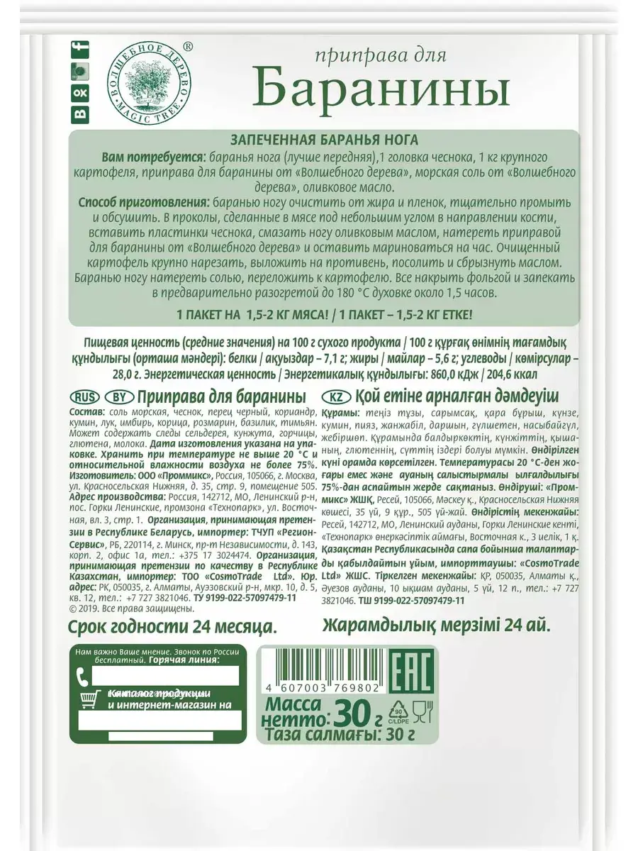Однако, в этом деле важно не переборщить. В этом вам поможет сбалансированный состав приправы для баранины Волшебное дерево. В комплекте 4 штуки по 30г.