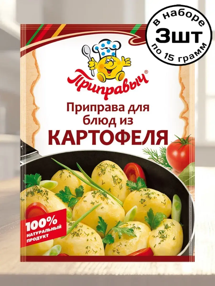 Трудно найти человека, который не любил бы картошку! Не удивительно, что сам овощ прозвали «вторым хлебом»: он одинаково уместен как на праздничном столе, так и в качестве простого ужина в семье. Из картофеля вы можете приготовить гарниры, пирожки с картофелем, вареники и т.д. Эта приправа сочетает в себе ароматные специи и пряные травы. Она сделает ваши блюда еще вкуснее. Добавлять за 5-10 минут до готовности блюда.