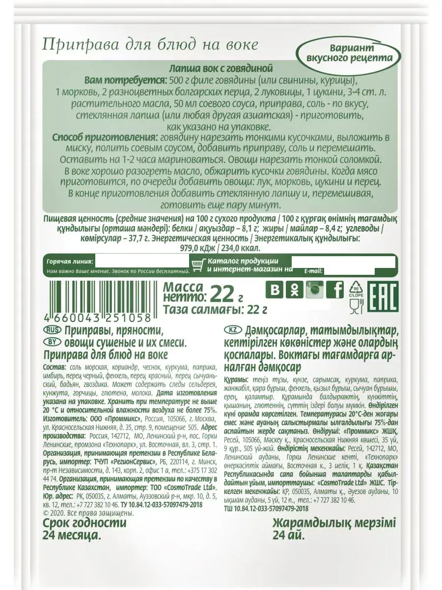Продукты, которые готовятся на воке, сохраняют свои полезные свойства. Китайцы очень положительно относятся к приправам и специям и с радостью добавляют их во все свои национальные блюда. Оригинальная приправа «Для блюд на воке» обладает пряным и острым, сладковатым вкусом, передает атмосферу традиционной китайской трапезы. Приправа идеально подходит к лапше, мясному рагу, крупам, блюдам из рыбы. В комплекте 4 штуки по 22г.