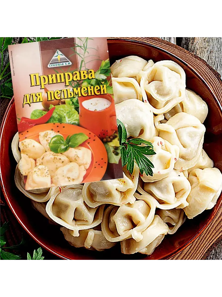 Приправу добавляют в кипящую воду в процессе приготовления или посыпают уже готовые пельмени. Красный перец, кориандр, чеснок и петрушка подчеркивают вкус и придают пельменям нежный овощной аромат. Перед подачей на стол пельмени можно заправить сметаной, смешанной с приправой. Приправа идеальна не только для пельменей, но и для вареников, манты, хинкали или домашних супов. Добавьте ее в бульон, соус или посыпьте готовое блюдо для завершения вкусовой композиции. С приправой Cykoria пельмени станут еще вкуснее, а ваши кулинарные эксперименты – разнообразнее! В комплекте 5 пакетиков по 30г.