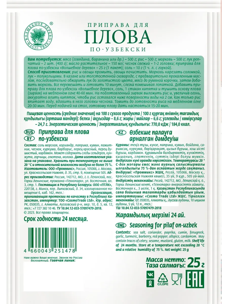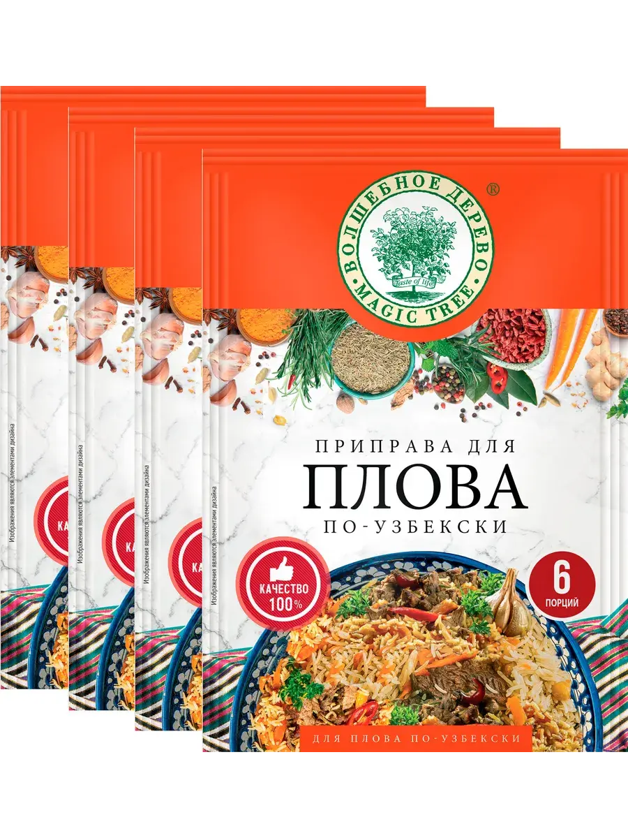 Смесь специй для приготовления плова по-узбекски содержит ингредиенты, которые оттенят вкус риса, сделают мясо ароматным и сочным. Барбарис придаст лёгкую кислинку, разные сорта перца добавят остроты и пикантности. Специи, входящие в смесь для плова, гармонично дополняют друг друга и придают готовому блюду неповторимый вкус. Для приготовления традиционного узбекского плова рекомендуется использовать баранину, грудинку или лопатку. Приправа подойдёт и для других видов мяса. В комплекте 4 штуки по 25г.