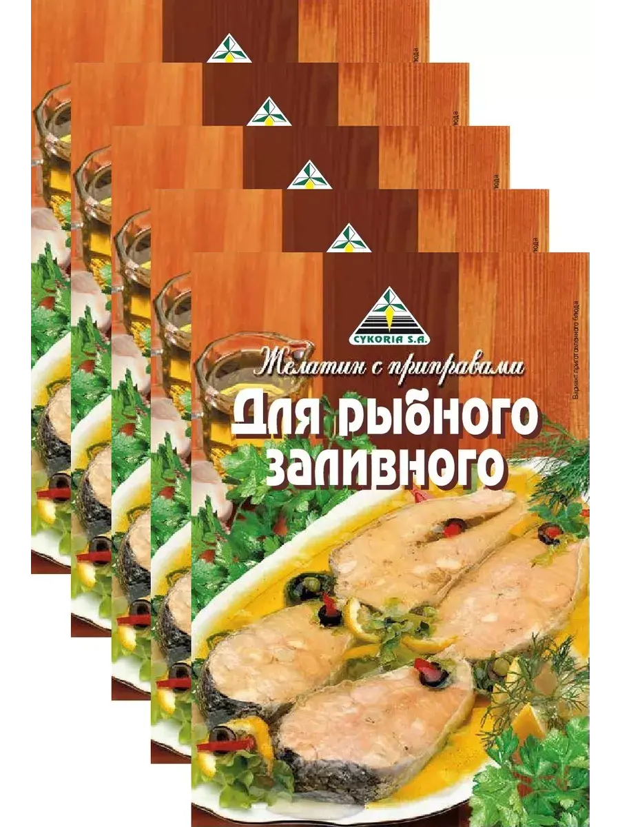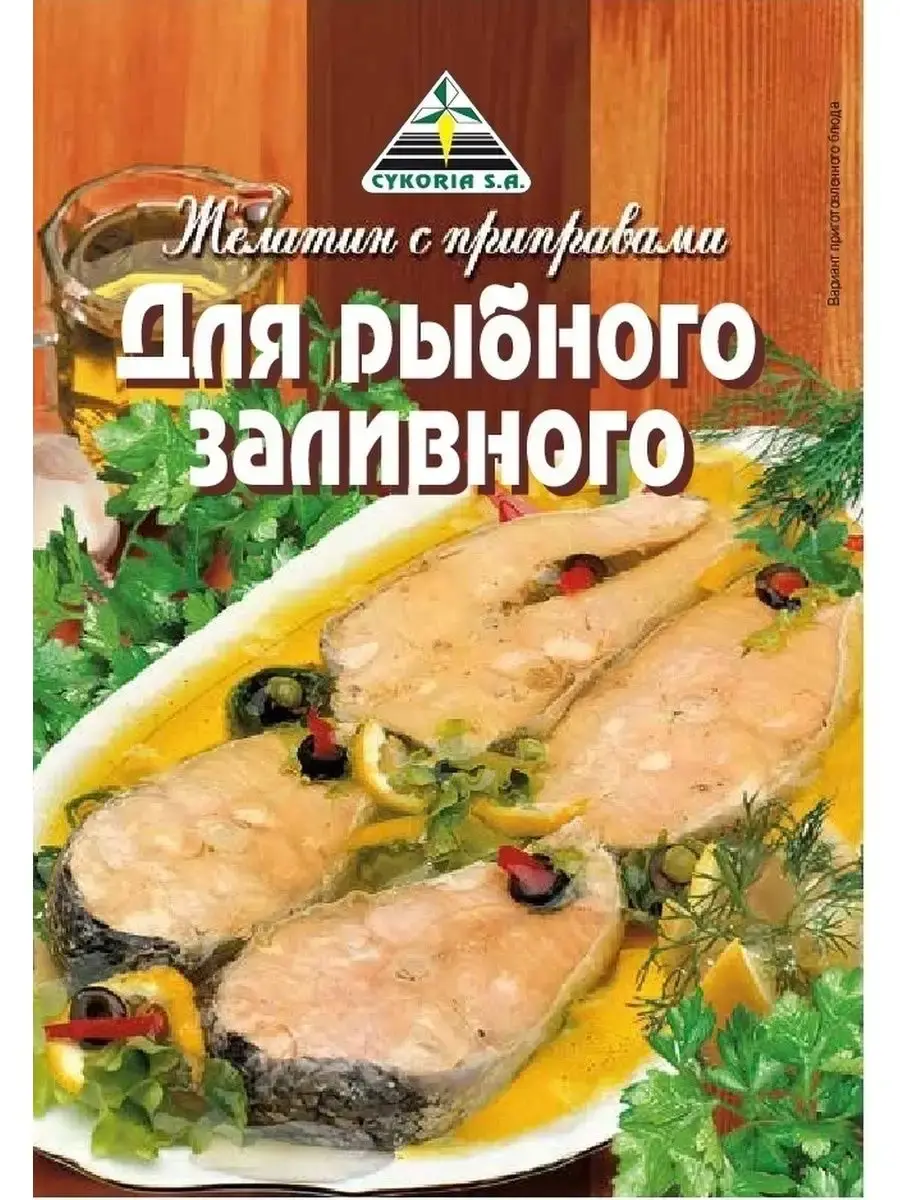 Уникальный продукт - желатин с приправами. Ароматная смесь специй, пряных трав, сушеных овощей, которые сделают более богатым и глубоким вкус вкус рыбного заливного. 1 пакетик = 1 кг готового блюда.