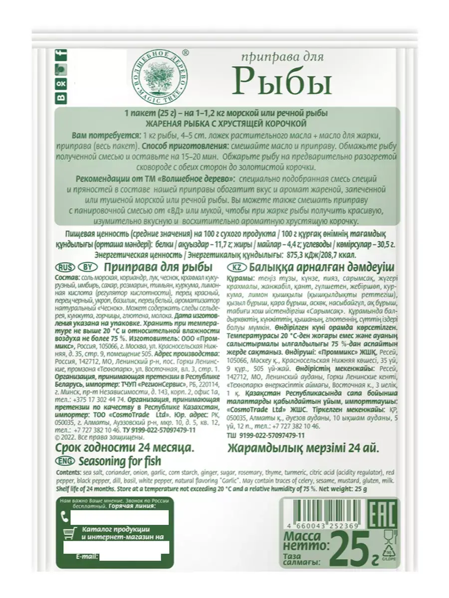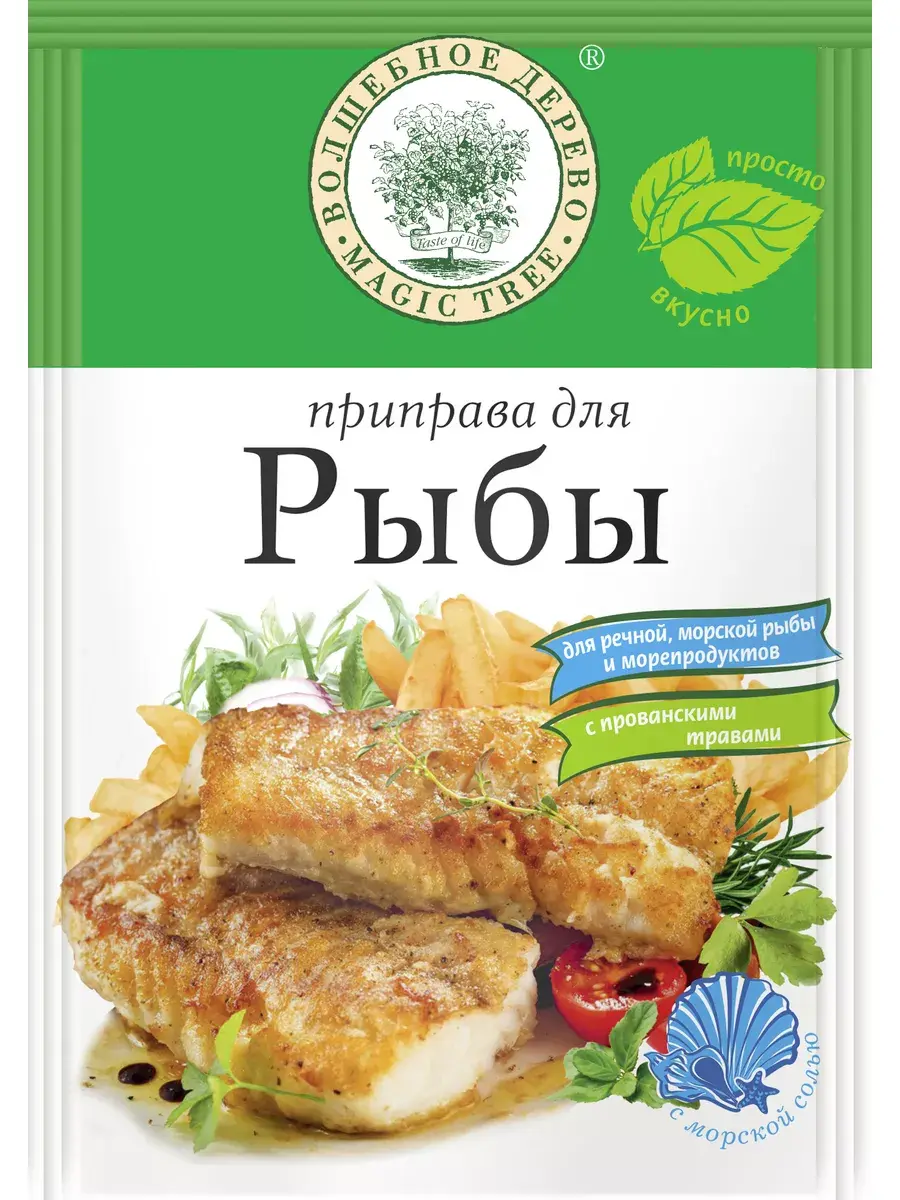 Жареная, запеченная или тушеная рыба получится в разы вкуснее, со специальной смесью «Волшебное Дерево»: пряный кориандр и тимьян, в сочетании с морской солью, перцем и чесноком придадут насыщенности. Для того, чтобы рыба хорошо пропиталась, достаточно посыпать ее смесью за 10-15 минут до приготовления.