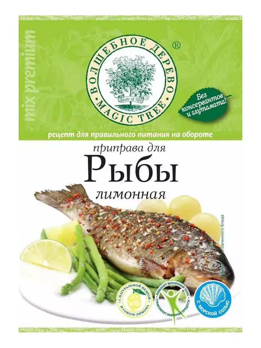 Жареная, запеченная или тушеная рыба получится в разы вкуснее, со специальной смесью «Волшебное Дерево»: тонкий лимонный аромат отлично дополнит ее естественный вкус, а пряный кориандр и тимьян, в сочетании с морской солью, перцем и чесноком придадут насыщенности. Для того, чтобы рыба хорошо пропиталась, достаточно посыпать ее смесью за 10-15 минут до приготовления.