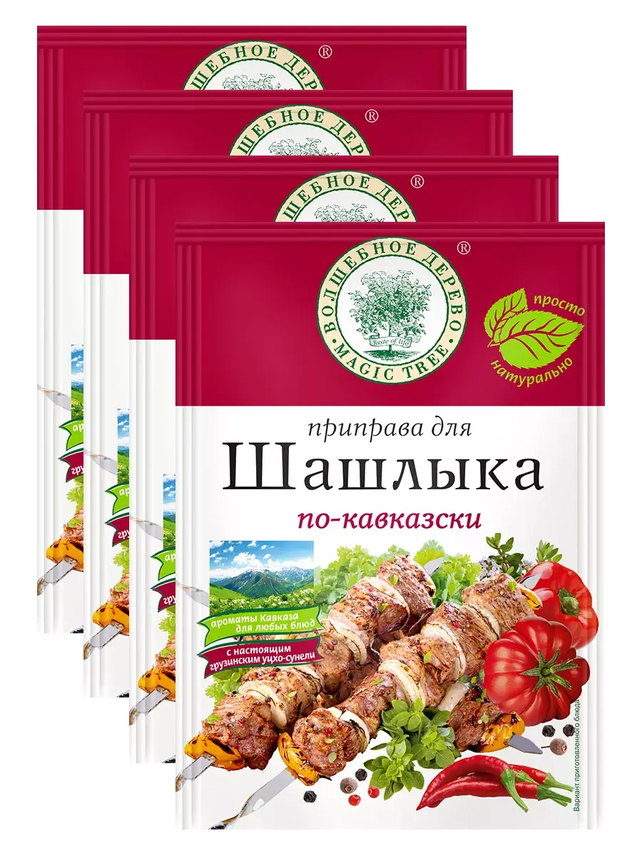Ощутите вкус Кавказа с уникальной приправой для шашлыка! Созданная из натуральных ингредиентов по традиционным рецептам, она подарит вашему мясу неповторимый аромат и насыщенный вкус. Смесь приправ содержит только лучшие компоненты, включая морскую соль, кориандр, базилик, горчицу, паприку, чеснок, перец черный, перец красный, уцхо-сунели, перец душистый, петрушку, мяту и чабер. Это идеальное сочетание специй придаст вашему шашлыку тот неповторимый вкус и аромат, который так полюбился на Кавказе. Сделайте каждое мгновение на вашем гриле незабываемым с приправой для шашлыка по-кавказски! В комплекте 4 пакетика по 25г.