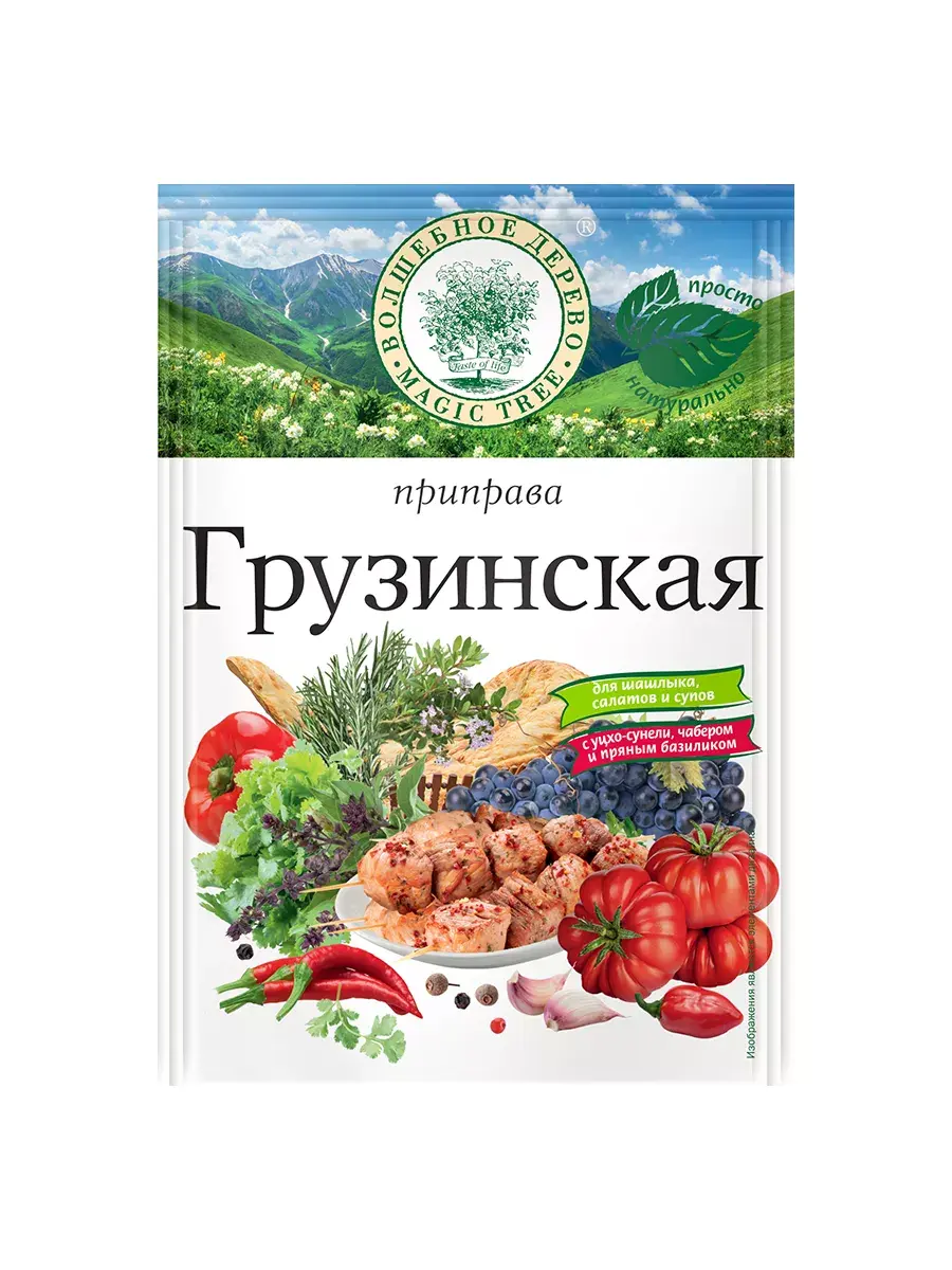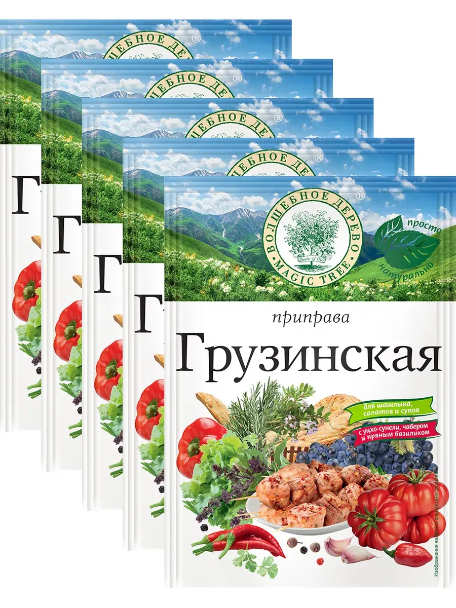 Грузинская кухня - одна из самых богатых и древних кухонь мира. Большинство блюд ведут свою историю со времен Колхиды и Диаохи. Многие из грузинских блюд известны и любимы во всем мире: хинкали, харчо, чурчхела, сациви, ткемали, хачапури, цыпленок табака, лобио, бадриджани и пр. Грузинская кухня характеризуется пряными ароматами и остро-сладкими вкусами. В Грузии принято готовить сытные и насыщенные блюда. Основное отличие грузинской кухни заключается в идеальном сочетании мяса, овощей, зелени, пряностей и специй. Особое место в ней занимают необычные соусы из овощей, зелени и даже из фруктов (сливы, терна, алычи, кизила, граната). В состав соусов часто входит кинза, чеснок и грецкие орехи. Приправа идеально подходит для блюд из мяса, птицы, рыбы, овощей. Ее добавляют в бульоны и супы, в овощные салаты и различные гарниры, в соусы и подливы. В комплекте 5 пакетиков по 25г.