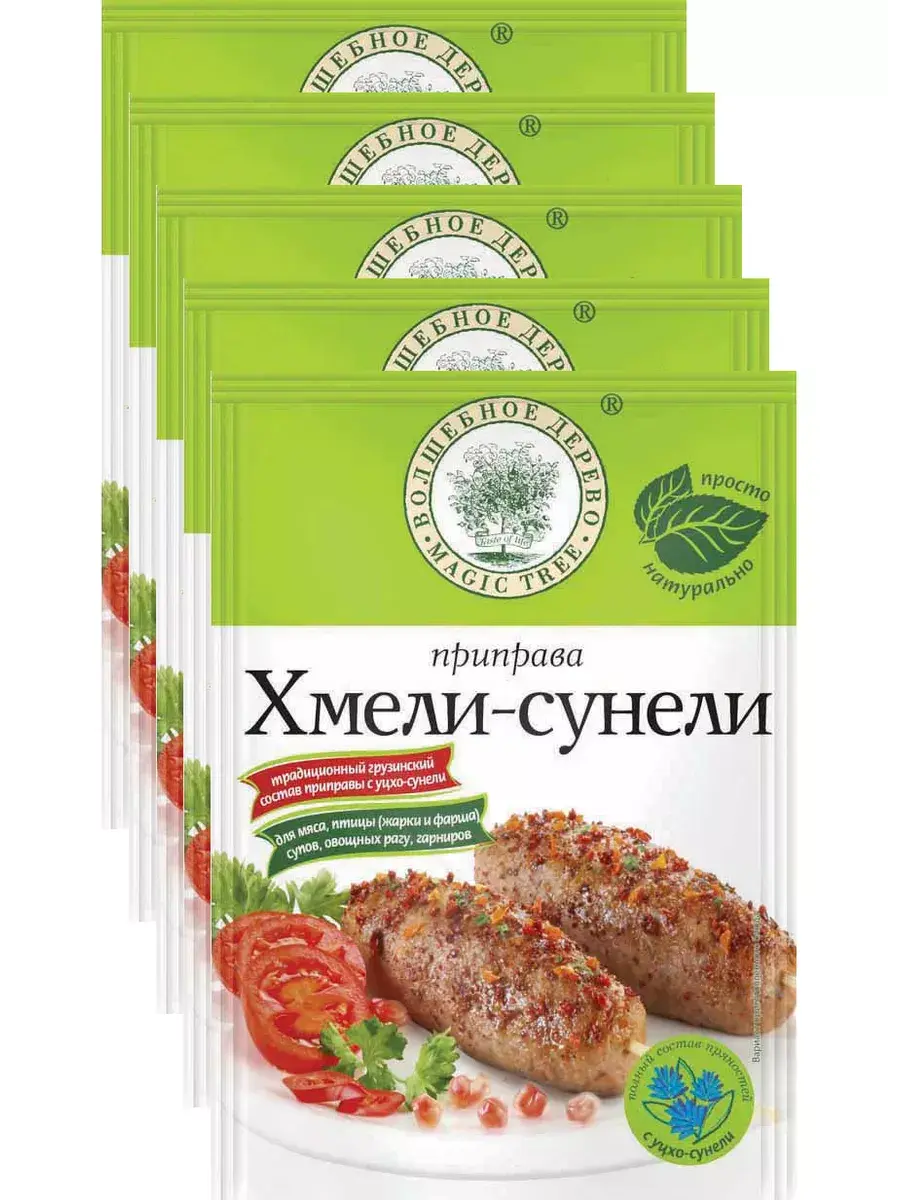 Привет из Грузии! Хмели-сунели, как их называют, переводится с грузинского как «пряная смесь» и придаёт блюдам уникальный аромат, который навряд ли с чем-то можно перепутать. Яркие свежие ноты базилика, сладковатый оттенок майорана, пикантность красного перца и аппетитные оттенки петрушки — всё это в составе прекрасных хмели-сунели. Известная пряная смесь из кориандра, уцко-сунели, базилика, майорана, укропа, чабреца, мяты, петрушки, лаврового листа, красного перца и куркумы, дополненных морской солью. Обладает насыщенным ароматом и острым вкусом. Традиционно используется в Грузии и Армении, а также в кухнях других народов Кавказа. Обязательна для приготовления харчо, чахохбили, сациви и аджики; также украсит вкус разных мясных и рыбных блюд. В комплекте 5 пакетиков по 30г.